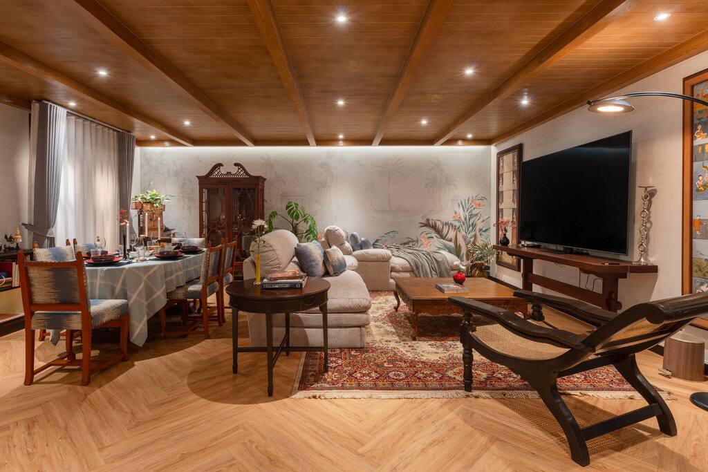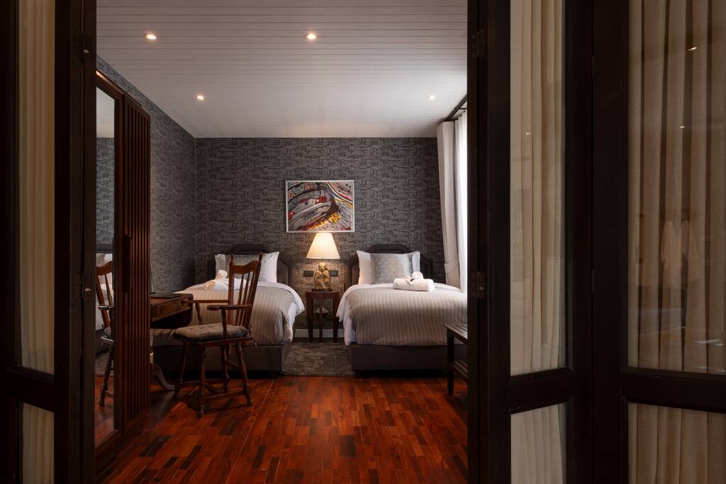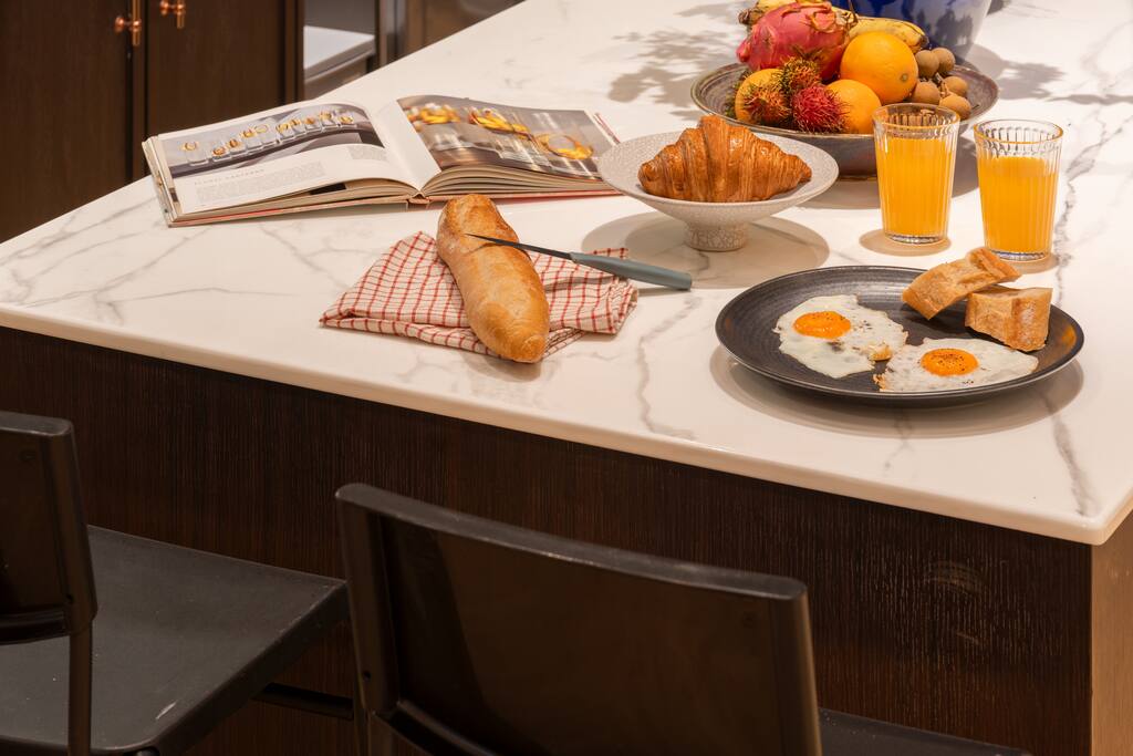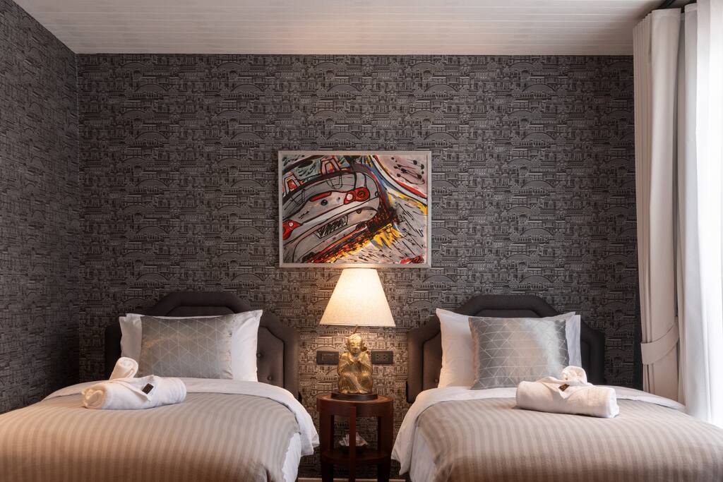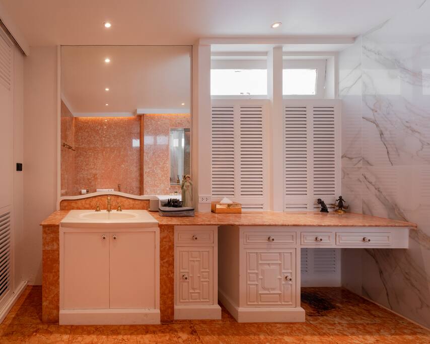 ✾ PROPERTY HIGHLIGHTS ✾ 🛋️ Oversized Living Room Relax, work, or entertain in this spacious, sun-filled living area – perfect for families or gatherings with friends. ✔ Open, airy layout with plenty of natural light ✔ Large coffee table for movie nights or board games ✔ 85” Smart TV with Netflix & ultra-fast 500Mbps Wi-Fi ✔ Dining table seating up to 6 guests ✔ Multiple cozy seating areas for every mood ⸻ 🛏️ MASTER HAVEN – King Suite Indulge in comfort and style in the master bedroom designed for pure relaxation. ✔ King bed with luxury mulberry silk pillows (perfect for hair & skin) ✔ Italian marble bathroom with spa-inspired round bathtub ✔ Private lounge sofa & Smart TV for movie nights ✔ Full-length mirror, vanity area & workspace with desk and chair ✔ Hair dryer, iron, and ironing board included ⸻ 🛏️ Twin Bedroom Perfect for families or friends traveling together. ✔ Twin beds with personal wardrobes ✔ Dedicated workspace with desk & chair ✔ Full-length mirror & dressing area ✔ Hair dryer, iron, and ironing board included ⸻ 🍽️ Fully Equipped Kitchen & Sunroom Cook, chat, or simply unwind in the sunlit kitchen with central island. ✔ Induction stove, coffee maker, toaster, blender, juicer & more ✔ Full cookware set and basic cooking essentials ✔ Sunroom lounge area & outdoor dining for two ✔ Open-plan layout with central island & stool seating ⸻ 🛁 Spa-Like Bathrooms Your private retreat after exploring Bangkok. ✔ Full-size bathtub with complimentary bath salts ✔ Fluffy towels, robes & toiletries provided ✔ Hot & cold water in both bathrooms ✔ Relaxing ambiance for a spa-like experience 📍 Prime Thonglor Location Only 3 minutes to BTS Thong Lor, you’re surrounded by Bangkok’s trendiest cafés, restaurants, and nightlife. Close By: • 🍽️ Food & Drinks: Top Japanese restaurants, cafés, and bakeries within walking distance • 🛍️ Shopping: The M-District (EmSphere, EmQuartier, Emporium) for luxury shopping & dining • 🏋️♂️ Fitness & Wellness: Muay Thai, yoga, Pilates, spas, and Bangkok’s top climbing gym nearby • 💎 Local Gems: Jouer – a charming creative hub just steps behind the property, featuring curated coffee shops and unique boutiques for a perfect afternoon escape. ⸻ 🏯 About the Home Designed by celebrated architect John Rifenberg in the 1970s for one of Bangkok’s elite families, this heritage penthouse combines architectural history with modern comfort. Newly renovated and art-filled, it offers a unique cultural stay in Sukhumvit’s most dynamic neighborhood. ⸻ Why Guests Love It ✔ Top-floor privacy in a heritage building ✔ Hot tub & spa access for total relaxation ✔ Daily housekeeping & airport pickup available ✔ Vibrant nightlife, dining & culture at your doorstep
