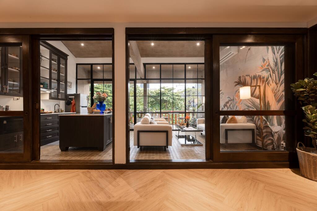 ✾ Authentic Thai Heritage ✾ Experience Bangkok in style at this Architect Penthouse by John Riffenberg, built for a renowned Thai family in the 70’s and newly renovated. Enjoy a unique stay with: ✾ 2 Bedrooms, 2 Bathrooms – King + Twin beds with mulberry silk pillows ✾ Sunroom Retreat – Relax with books & natural light ✾ Hot Tub & Onsen access ✾ Fully Equipped Kitchen with island & dining area ✾ Multiple Lounges & 85” Smart TVs ✾ Free Parking & 24/7 Security Just 5 min to BTS Thong Lor!