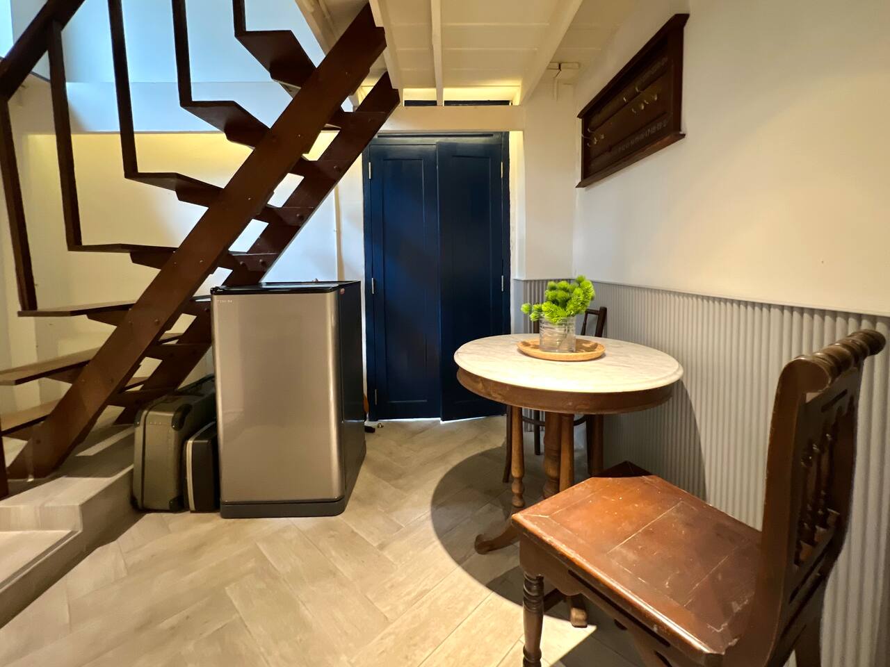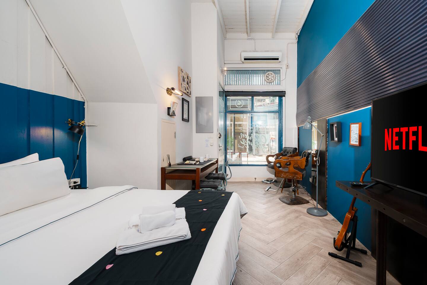 Stay in one of Bangkok’s most unique boutique apartments — The Barber, a private 2-bedroom section of NON INN, a historic shophouse reimagined for today’s traveler. Designed for up to 4 guests, this stylish unit blends vintage barber shop charm with modern comfort. We've carefully preserved the historic soul of each space while adding all the modern amenities you need. BTW. "Non" means "sleep" in Thai—come rest and experience Bangkok's authentic charm! 🛌 Sleeping Arrangements 💈 Bedroom 1 – The Barber Master Room 🔹 1 King bed 🔹 Netflix Smart TV 🔹 Desk with chair 🔹 Vintage barber chairs for a quirky, stylish touch 💈 Bedroom 2 – The Barber Twin Room 🔹 2 Twin beds 🔹 Projector TV (Youtube only) 🔹 Compact wardrobe --> Note: Footsteps and chatter from upper floor of the historical house may be heard at times. 🚿 Private Bathroom 🔹 Spacious tiled shower 🔹 Stylish vanity (set on a vintage Singer sewing machine) 🔹 Toiletries: shampoo, conditioner, soap, body wash 🔹 Fresh towels & hair dryer 🍴 Kitchenette – Light Cooking Only 🔹 Mini fridge + freezer 🔹 Microwave, toaster, kettle, coffee maker 🔹 Basic cookware & tableware 🔹 Starter condiments (oil, salt, pepper) 💼 Work & Relax 🔹 High-speed Wi-Fi (1 Gbps) 🔹 Dedicated desk & workspace 🔹 Smart TV + Netflix projector for movie nights ★ 🌆 Location Perks – Charoen Krung 43★ 🍽️ Food & Drinks: • Jay Fai (Michelin-starred crab omelette) – walkable • Prachak Roasted Duck (Michelin Bib Gourmand) • Jok Prince (famous congee) • Baan Phadthai (classic pad thai) • The Never Ending Summer (riverside dining) • Jack’s Bar (sunset drinks) • Dozens of cozy cafés & hidden bars on our street 🛍️ Shopping: • ICONSIAM – luxury riverside mall, short ferry ride • River City Bangkok – art, antiques, riverside events • Talad Noi – quirky vintage shops & local markets 💎 Local Gems: • Warehouse 30 – creative design hub • ATT 19 – art & pop-up events • Bangrak district – historic streets • Talad Noi – photogenic alleys • Chinatown (Yaowarat) – night markets & gold shops 🧘 Wellness: • Let’s Relax Spa – Thai massage & wellness • Lhong 1919 – riverside yoga & heritage space • Chaloem Phrakiat Park – riverside jogging & picnics ★ YOUR CONCIERGE ★ • BTS / river-boat guidance & Rabbit-card top-ups • River-dinner cruise or long-tail canal tour bookings • Michelin reservations or hidden-alley street-food walks • Airport transfers, daily cleaning, personal chef, baby cot/high-chair—all on request We love hosting families and groups! Let us know if you’re celebrating a special occasion, and we’ll help make it unforgettable! Ready to experience Bangkok like a local—without giving up comfort or convenience? Book your stay at NON INN now and let us take care of the rest. We can’t wait to welcome you! Literally!