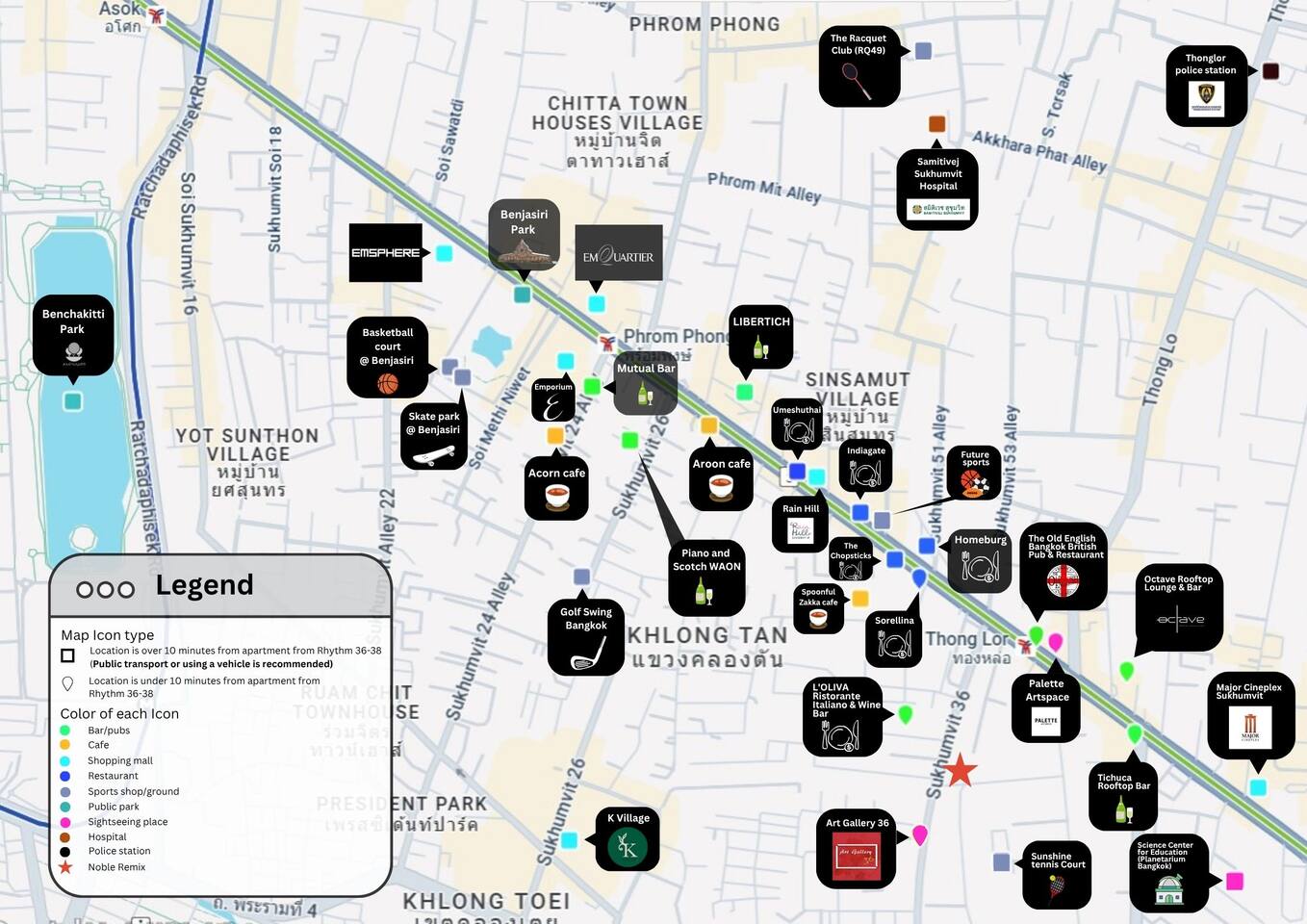 Ideally located in a quiet residential pocket near BTS Thong Lor, Rhythm 36-38 offers easy access to the city. Trendy cafes, bars, restaurants, and malls make it perfect for those who want central convenience with a calm, stylish vibe.