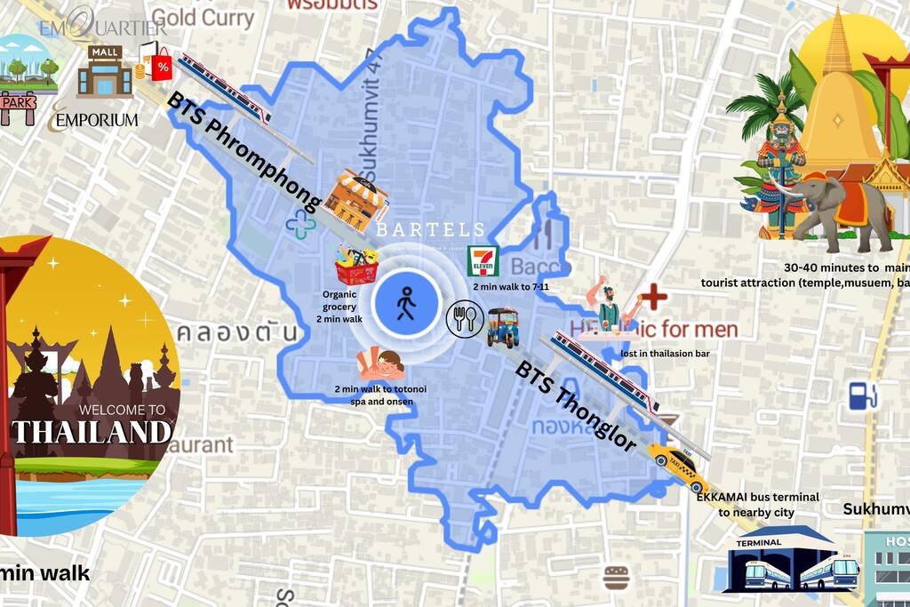 Just minutes from BTS Thong Lo, this leafy neighborhood feels like a little village in the city. ☕ Wake up to the charm of Thong Lor: pastries and coffee in friendly cafés, browsing unique shops by day, then winding down at hidden bars and glowing streets by night. ✨ Thong Lor blends trendy energy with cozy comfort, family run eateries, welcoming locals, and tucked-away corners make it the perfect spot to feel both connected and at home. 🍷 From lazy mornings with fresh coffee to lively evenings in wine bars and izakayas, the neighborhood invites you to slow down, explore, and enjoy its warm rhythm. 🏙️ A stylish yet inviting hideaway in the heart of Bangkok, where boutique shops, cafés, and welcoming neighbors make every day feel special