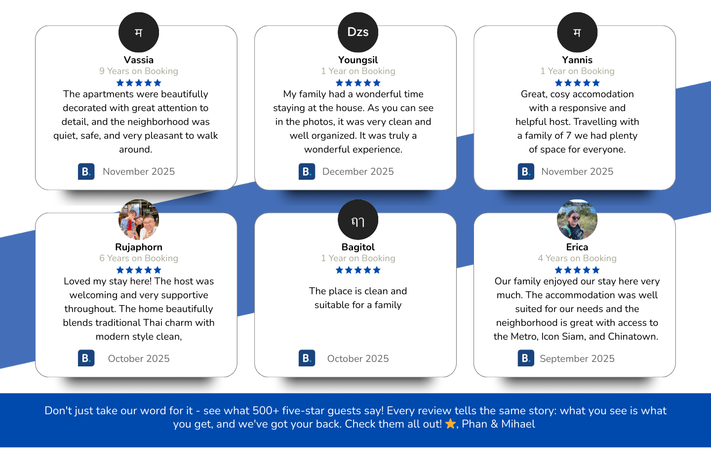 NON INN is a unique shop townhouse, thoughtfully transformed from three historical and distinct businesses that existed there before: 📮 The Post : Once a bustling post office, now your spacious living room, kitchen, and master bedroom. 💈The Barber Shop : A classic barbershop, now two more unique bedrooms blending vintage charm with modern comfort. We've carefully preserved the historic soul of each space while adding all the modern amenities you need. BTW. "Non" means "sleep" in Thai—come rest and experience Bangkok's authentic charm! ★ PROPERTY HIGHLIGHTS ★ NON INN -your private 5-bedroom shophouse, designed for groups and families who want both comfort and character in the heart of Bangkok’s historical creative district. Spread out over multiple levels, you’ll find: ✦Three individually air-conditioned bedrooms, each with fresh linens and plenty of storage ✦Two full bathrooms stocked with essentials and hot showers ✦Smart TVs + projector with Netflix for everyone’s favorite shows ✦A spacious living lounge ✦A large dining area for shared meals or work sessions ✦A fully equipped kitchen with stove, fridge, microwave, cookware, and tableware ✦Washing machine and laundry essentials for longer stays ✦High-speed WiFi throughout the house 📍Prime Location - Charoen Krung 43 Alley No tourist traps: Bangkok's rich cultural neighborhood, all the places you’ve seen online, literally downstairs right here in Charoen Krung just steps from your door. Where food earns Michelin stars without fancy plates, where riverside cafés and art spaces go viral Bangkok gems. ★ Why people love NON INN★ Google Maps Review snippet: Kenneth Wong (🌟🌟🌟🌟🌟): "We thoroughly enjoyed our stay here while visiting Bangkok. The rooms are tastefully decorated, has spacious bathrooms and allows each to have its privacy as well." ★ LIVING ROOM ★ Comfy living space designed for relaxation, entertainment and friends. The open-plan layout create the perfect ambiance for unwinding together after a day in the city. ✔ Comfortable Large Sofa with Pillows (can turn into a very comfortable queen bed) ✔ Smart TV (50") for a cinematic experience with Netflix ✔ Board Games and Wine Glasses for hosting ★ FULL KITCHEN ★ Prepare delicious meals in the fully stocked kitchen, complete with high-quality appliances, cookware, and tableware. ✔ Electric Stove ✔ Rice Cooker and Kettle ✔ Full-size fridge and freezer ✔ Assorted Non-Stick Pans, Pots, and Kitchen Utensils ✔ Cooking Oils, Assorted Sauces, Garlic ✔ Washing Machine ★ SLEEPING ARRANGEMENTS – 3 BEDROOMS ★ Three generously sized bedrooms + living room sofa comfortably accommodate up to 8 guests, each with its own unique character and thoughtful touches for a restful stay. ♛ Bedroom 1 (📮 The Post): King-size bed, office desk, lounge chair, and a cozy book nook chaise. Traditional Thai wooden blinds on the windows offer privacy and a view over a quiet alley with a gallery and café across the street. There’s also a wardrobe and an additional window to the inner atrium above the dining room. ♛ Bedroom 2 (💈The Barber): King-size bed in a former barbershop, smart TV with Netflix, office desk, and authentic reclining barber chairs for a unique touch. ♛ Bedroom 3 (💈The Barber): Two single beds, projector TV, small hanging wardrobe, and a simple, cozy setup—perfect for friends or kids. ✨BONUS!✨ ♛ Living Room Sofa Bed (📮 The Post): The spacious living room sofa can be converted into a comfortable queen-size bed, available for additional guests upon request. It's a cozy spot to relax, read, or watch Netflix, with easy access to the kitchen (special privilege of this sleeping area in the house). ★ TWO BATHROOMS – One in Each House Section ★ All Bathrooms Include: ✔ Fluffy towels ✔ Toiletries: shampoo, conditioner, body wash, soap ✔ Hair dryer ✔ Bright lighting and mirrors ✔ Toilet with a bidet 📮 The Post Bath: ✔ Spacious shower ✔ Luminous sink and large mirror ✔ Airy, open feel 💈The Barber Bath: ✔ Large, tiled shower ✔ Vanity sink on an old Singer Machine with lights and mirror ✔ Stylish tiles ★ WORK & PLAY★ All workspaces come with: ✔ High-speed fiber (1 Gbps) ✔ Desk & chair | Power outlets | Good lighting But these aren’t ordinary desks. Each tells the story of the shop that once lived here—so when you open your laptop, you’re stepping into a little piece of Bangkok history. 📮 The Post Office: Imagine the post-teller tallying stamps and hand-sorting letters. ✔ Original writing table, polished but still bearing tiny ink marks ✔ Vintage green banker’s lamp that once lit stacks of postcards 💈The Barber Office: Picture the barber pausing between trims to settle his accounts. ✔ Broad counter-desk where razors and pomade once rested ✔ Sunlight from the tall window, just as it lit his mirror and brush set ★ CLOSE BY ★ 🍽️ Food & Drinks: • Jay Fai (Michelin-starred crab omelette) – walkable • Prachak Roasted Duck (Michelin Bib Gourmand) • Jok Prince (famous congee) • Baan Phadthai (classic pad thai) • The Never Ending Summer (riverside dining) • Jack’s Bar (sunset drinks) • Dozens of cozy cafés & hidden bars on our street 🛍️ Shopping: • ICONSIAM – luxury riverside mall, short ferry ride • River City Bangkok – art, antiques, riverside events • Talad Noi – quirky vintage shops & local markets 💎 Local Gems: • Warehouse 30 – creative design hub • ATT 19 – art & pop-up events • Bangrak district – historic streets • Talad Noi – photogenic alleys • Chinatown (Yaowarat) – night markets & gold shops 🧘 Wellness: • Let’s Relax Spa – Thai massage & wellness • Lhong 1919 – riverside yoga & heritage space • Chaloem Phrakiat Park – riverside jogging & picnics ★ YOUR CONCIERGE ★ • BTS / river-boat guidance & Rabbit-card top-ups • River-dinner cruise or long-