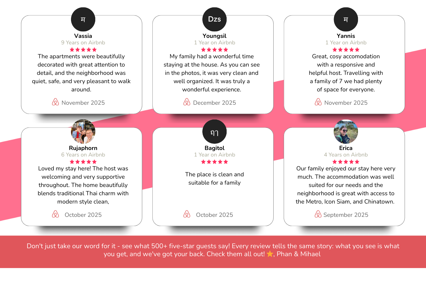 NON INN is a unique shop townhouse, thoughtfully transformed from three historical and distinct businesses that existed there before: 📮 The Post : Once a bustling post office, now your spacious living room, kitchen, and master bedroom. 💎 The Jewelry Shop : Formerly a refined jewelry shop, now two private, comfortable bedrooms. 💈The Barber Shop : A classic barbershop, now two more unique bedrooms blending vintage charm with modern comfort. We've carefully preserved the historic soul of each space while adding all the modern amenities you need. BTW. "Non" means "sleep" in Thai—come rest and experience Bangkok's authentic charm! ★ PROPERTY HIGHLIGHTS ★ NON INN -your private 5-bedroom shophouse, designed for groups and families who want both comfort and character in the heart of Bangkok’s historical creative district. Spread out over multiple levels, you’ll find: ✦Five individually air-conditioned bedrooms, each with fresh linens and plenty of storage ✦Three full bathrooms stocked with essentials and hot showers ✦Three smart TVs with Netflix for everyone’s favorite shows ✦A spacious living lounge ✦A large dining area for shared meals or work sessions ✦A fully equipped kitchen with stove, fridge, microwave, cookware, and tableware ✦Washing machine and laundry essentials for longer stays ✦High-speed WiFi throughout the house 📍Prime Location - Charoen Krung 43 Alley No tourist traps: Bangkok's rich cultural neighborhood, all the places you’ve seen online, literally downstairs right here in Charoen Krung just steps from your door. Where food earns Michelin stars without fancy plates, where riverside cafés and art spaces go viral Bangkok gems. ★ Why people love NON INN★ Google Maps Review snippet: Kenneth Wong (🌟🌟🌟🌟🌟): "We thoroughly enjoyed our stay here while visiting Bangkok. The rooms are tastefully decorated, has spacious bathrooms and allows each to have its privacy as well." ★ LIVING ROOM ★ Comfy living space designed for relaxation, entertainment and friends. The open-plan layout create the perfect ambiance for unwinding together after a day in the city. ✔ Comfortable Large Sofa with Pillows (can turn into a very comfortable queen bed) ✔ Smart TV (50") for a cinematic experience with Netflix ✔ Board Games and Wine Glasses for hosting ★ FULL KITCHEN ★ Prepare delicious meals in the fully stocked kitchen, complete with high-quality appliances, cookware, and tableware. ✔ Electric Stove ✔ Rice Cooker and Kettle ✔ Full-size fridge and freezer ✔ Assorted Non-Stick Pans, Pots, and Kitchen Utensils ✔ Cooking Oils, Assorted Sauces, Garlic ✔ Washing Machine ★ SLEEPING ARRANGEMENTS – 5 BEDROOMS ★ Five generously sized bedrooms comfortably accommodate up to 12 guests, each with its own unique character and thoughtful touches for a restful stay. ♛ Bedroom 1 (📮 The Post): King-size bed, office desk, lounge chair, and a cozy book nook chaise. Traditional Thai wooden blinds on the windows offer privacy and a view over a quiet alley with a gallery and café across the street. There’s also a wardrobe and an additional window to the inner atrium above the dining room. ♛ Bedroom 2 (💈The Barber): King-size bed in a former barbershop, smart TV with Netflix, office desk, and authentic reclining barber chairs for a unique touch. ♛ Bedroom 3 (💈The Barber): Two single beds, projector TV, small hanging wardrobe, and a simple, cozy setup—perfect for friends or kids. ♛ Bedroom 4 (💎 The Jewelry): King-size bed, open wardrobe, in-room coffee station with fridge and table—enjoy your morning coffee in privacy. ♛ Bedroom 5 (💎 The Jewelry): Two single beds, comfy bedding, individual reading lights, and a window for natural sunlight from the atrium. ✨BONUS!✨ ♛ Living Room Sofa Bed (📮 The Post): The spacious living room sofa can be converted into a comfortable queen-size bed, available for additional guests upon request. It's a cozy spot to relax, read, or watch Netflix, with easy access to the kitchen (special privilege of this sleeping area in the house). ★ THREE BATHROOMS – One in Each House Section ★ All Bathrooms Include: ✔ Fluffy towels ✔ Toiletries: shampoo, conditioner, body wash, soap ✔ Hair dryer ✔ Bright lighting and mirrors ✔ Toilet with a bidet 📮 The Post Bath: ✔ Spacious shower ✔ Luminous sink and large mirror ✔ Airy, open feel 💎 The Jewelry Bath: ✔ Compact shower ✔ Luminous mirror ✔ Bright and functional space 💈The Barber Bath: ✔ Large, tiled shower ✔ Vanity sink on an old Singer Machine with lights and mirror ✔ Stylish tiles ★ WORK & PLAY★ All workspaces come with: ✔ High-speed fiber (1 Gbps) ✔ Desk & chair | Power outlets | Good lighting But these aren’t ordinary desks. Each tells the story of the shop that once lived here—so when you open your laptop, you’re stepping into a little piece of Bangkok history. 📮 The Post Office: Imagine the post-teller tallying stamps and hand-sorting letters. ✔ Original writing table, polished but still bearing tiny ink marks ✔ Vintage green banker’s lamp that once lit stacks of postcards 💈The Barber Office: Picture the barber pausing between trims to settle his accounts. ✔ Broad counter-desk where razors and pomade once rested ✔ Sunlight from the tall window, just as it lit his mirror and brush set 💎 The JewelryOffice: Envision the jeweler drafting sketches and noting gemstone weights. ✔ Slim craftsman’s desk with a felt pad—now your laptop mat ✔ Quiet corner where tiny tools once tinkled, ideal for deep focus ✔ Soft task light that once made diamonds sparkle, now brightens idea ★ CLOSE BY ★ 🍽️ Food & Drinks: • Jay Fai (Michelin-starred crab omelette) – walkable • Prachak Roasted Duck (Michelin Bib Gourmand) • Jok Prince (famous congee) • Baan Phadthai (classic pad thai) • The Never Ending Summer (riverside dining) • Jack’s Bar (sunset