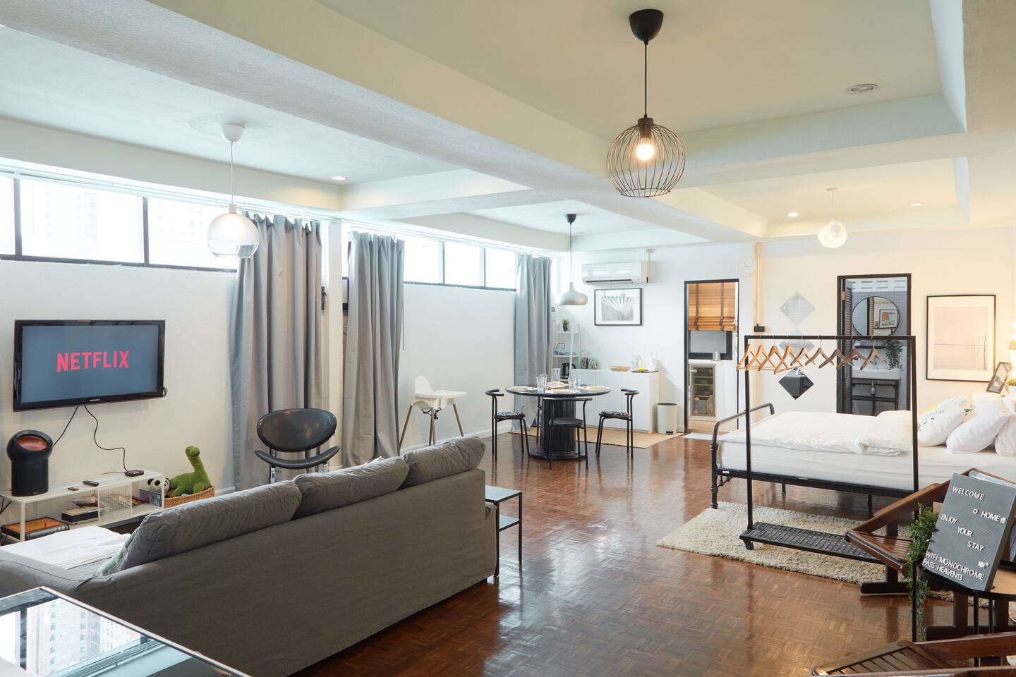 Perfect for couples, families, friends or digital nomads! ✨ Why You’ll Love It • 🛋️ 110m² open-plan space with stylish decor • 🖥️ Ergonomic workspace with fast WiFi • 🎬 Smart TV with Netflix, books & projector • 🧸 Toys for kids • 🧘 Air purifier & yoga/meditation space • 🥐 Breakfast station + dining area • 🛏️ King-size bed + sofa bed • 🌇 Rooftop access via kitchen ladder Add to you wishlist & press 🩷 Stay with us 👋 We are team of Superhost over 100s of 5-star reviews.