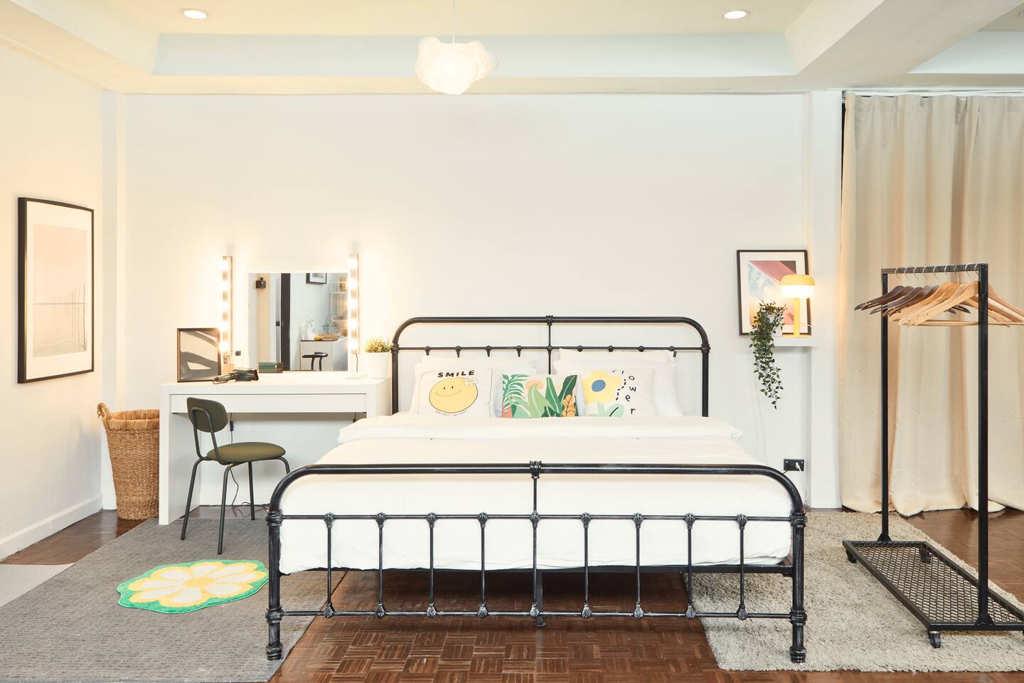 This tastefully decorated 60m2 open space is perfect for families or friends looking for a cozy retreat. With an office space, comfortable living area, and a sofa-bed that transforms into a double bed, there's plenty of room for everyone. Enjoy entertainment with a smart TV featuring Netflix, books, and even a projector. Little ones will love the selection of toys provided. Stay refreshed with an air purifier and unwind with plenty of space for yoga or meditation. The dining area is ideal for sharing meals, and the breakfast station ensures a great start to your day. Retreat to the separate sleeping area with a comfortable king-sized bed and ample clothing storage. Spend your evening watching Netflix or working on equipped workstation with our ergonomic chair. Bonus: Explore the city from our rooftop accessed via a ladder in the kitchen—perfect for sunset views and evening relaxation! 🌆 Amenities: ✔ Work space with ergonomic chair ✔ Equipped Kitchen ✔ Dining table material ✔ Washing Machine and Dryer (All in one) ✔ Make up table with Hollywood-style bulbs ✔ Dyson Air purifier ✔ Smart TV ✔ Fast WiFi ✔ Fully equipped for family with kid (high chair, kid book or baby cot) ★ NEARBY HIGHLIGHTS ★ 2 minutes walk to 7/11 3 minutes ride to Foodland (Supermarket) 2 Minutes ride to KFC 10 minutes walk to Ramkhamhaeng Airport Link 10 minutes ride to Sukhumvit (Thonglor or BTS)
