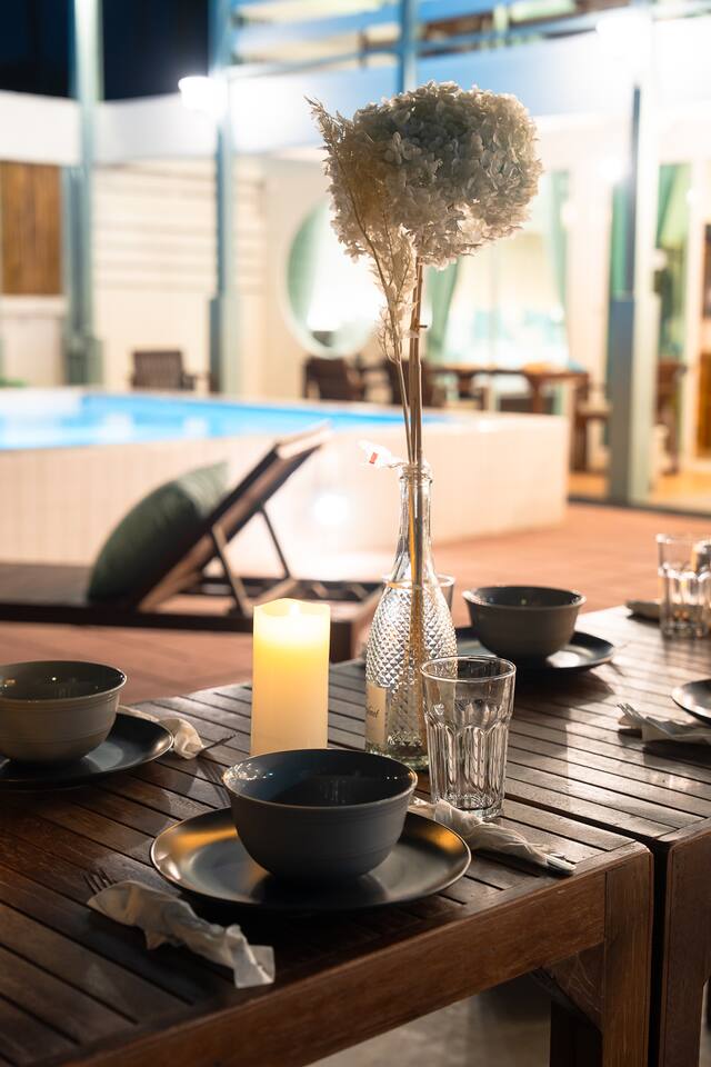 Half House Exclusive 3 bedrooms Private Living room & Kitchen Sleeps 14 , AC, WiFi, Smart TV, Netflix, Coffee/Tea, Pool, BBQ, Pool table, Cabana, Laundry, Beach access, Parking. Steps to Night Market. Perfect for Family & Friends Seaside Getaway. *Bank transfer available* วิลล่าครึ่งหลัง 3 ห้องนอน ห้องนั่งเล่น & ครัวส่วนตัว พักได้ 14 ท่าน สระว่ายน้ำ ครัวอุปกรณ์ครบ และเตาปิ้งย่างBBQ *สามารถติดต่อเราได้โดยตรง เพื่อรับส่วนลด รับชำระ เงินสด/โอนผ่านบัญชีธนาคาร