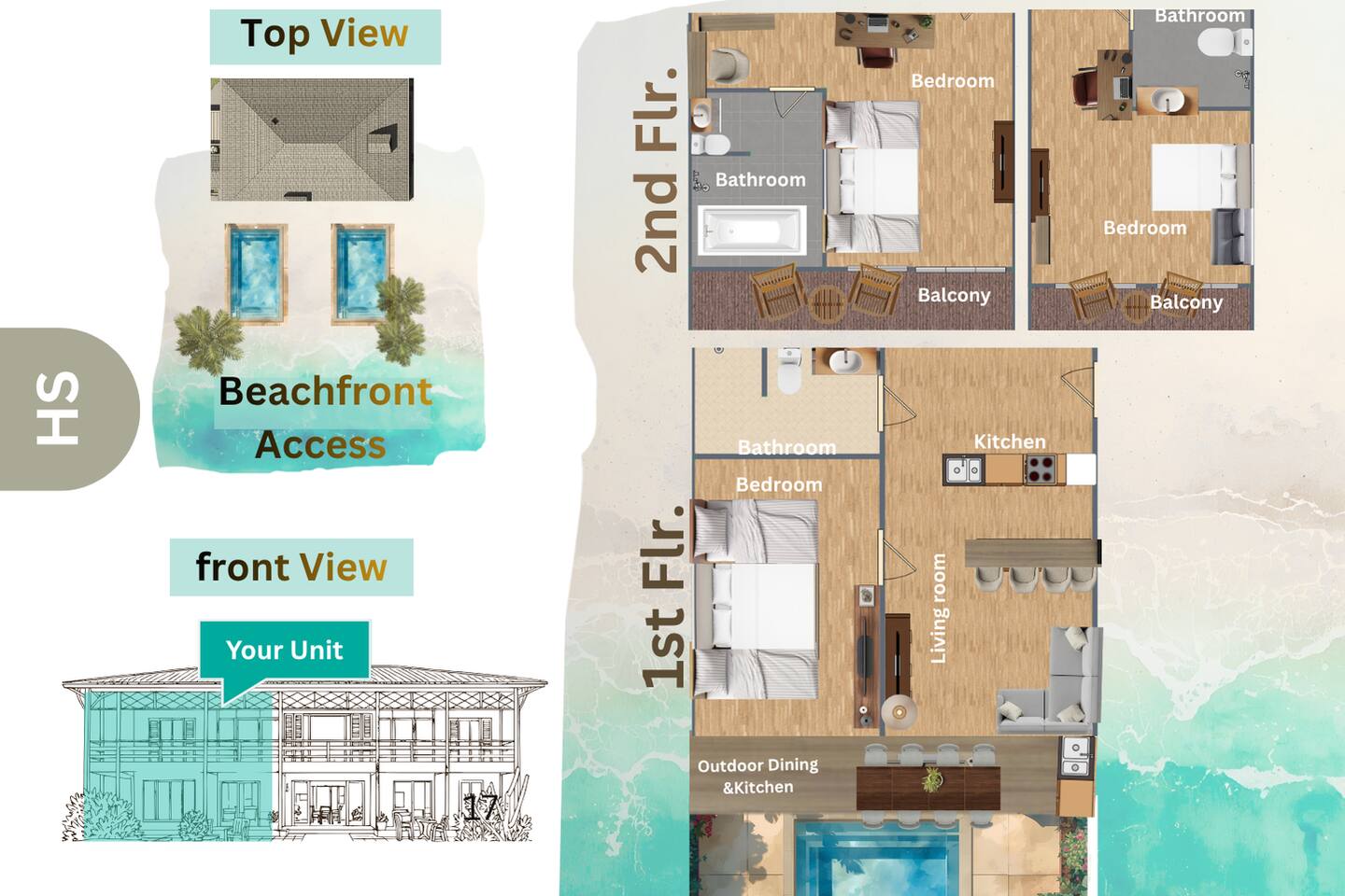 👣 Guest Access You’ll have full private access to everything inside your unit, including your living area, bedroom, kitchen, and private balcony overlooking the sea. The common spaces — two swimming pools, shared kitchen, pool table, beach cabana, and sunbeds — are open to all guests. You’re welcome to enjoy them freely while being considerate of others sharing the space. Quiet hours begin at 10 PM in all common areas. We kindly ask guests to help keep this beachfront home peaceful and respectful of our neighbors, so everyone can enjoy the calm coastal atmosphere. For safety and maintenance, certain areas remain staff-only, such as storage rooms, the pool pump room, maid quarters, and back-of-house service zones.