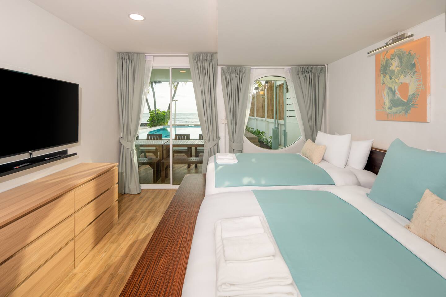 You’ll be staying in a private unit within our beachfront mansion. Please keep voices low after 10 PM and before 9 AM, both inside your unit and in shared areas, so everyone can enjoy the peaceful seaside atmosphere. Thailand is a tropical country, so insects are part of the natural environment. To stay comfortable, please close doors and windows, avoid leaving food out, and dispose of trash in the common bins to prevent mosquitoes or ants. 🌊 Beach Note: The shoreline changes with the tides and seasons — sometimes wide and walkable, other times gently touching the terrace. Each stage has its own charm, and we hope you’ll enjoy the natural rhythm of the sea.
