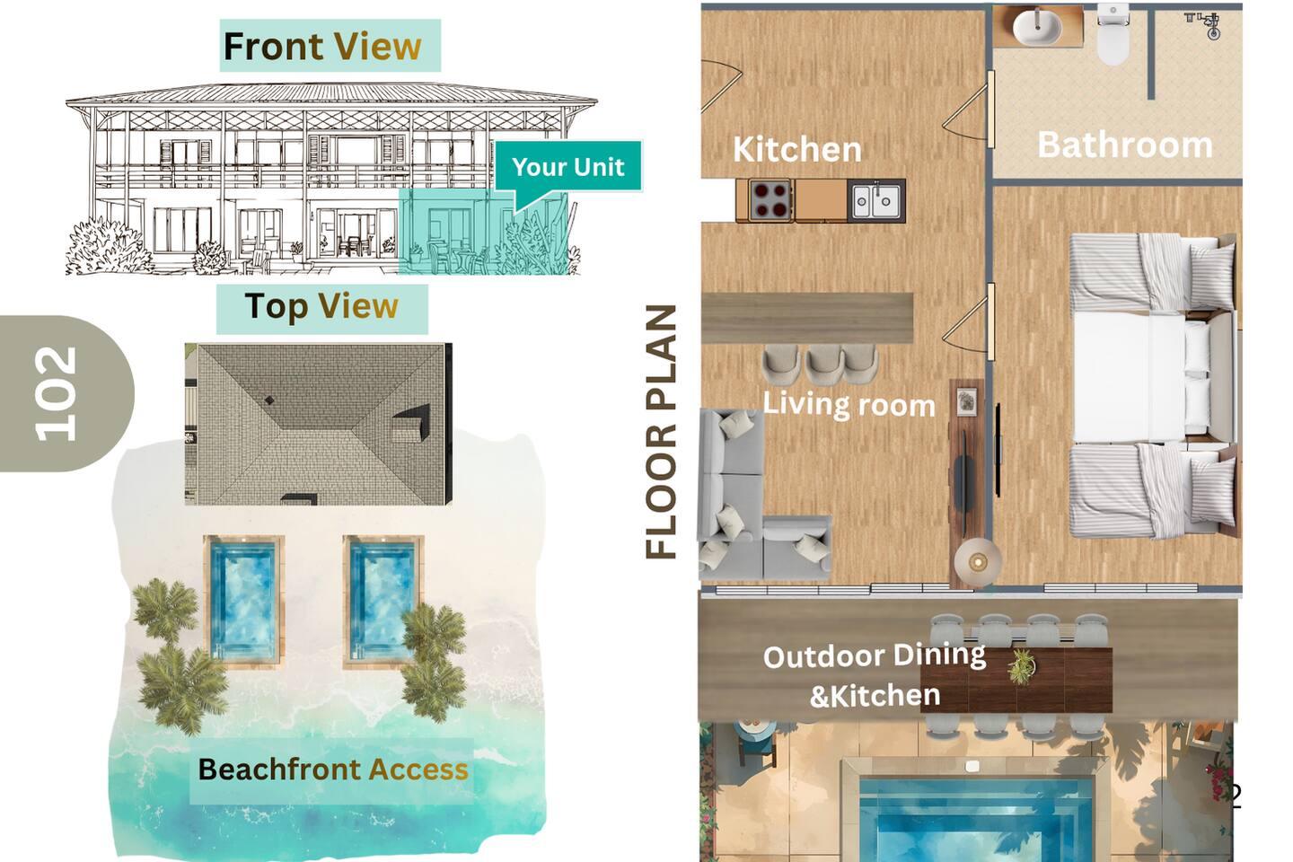 👣 Guest Access You’ll have full private access to everything inside your unit, including your living area, bedroom, kitchen, and private balcony overlooking the sea. The common spaces — two swimming pools, shared kitchen, pool table, beach cabana, and sunbeds — are open to all guests. You’re welcome to enjoy them freely while being considerate of others sharing the space. Quiet hours begin at 10 PM in all common areas. We kindly ask guests to help keep this beachfront home peaceful and respectful of our neighbors, so everyone can enjoy the calm coastal atmosphere. For safety and maintenance, certain areas remain staff-only, such as storage rooms, the pool pump room, maid quarters, and back-of-house service zones.