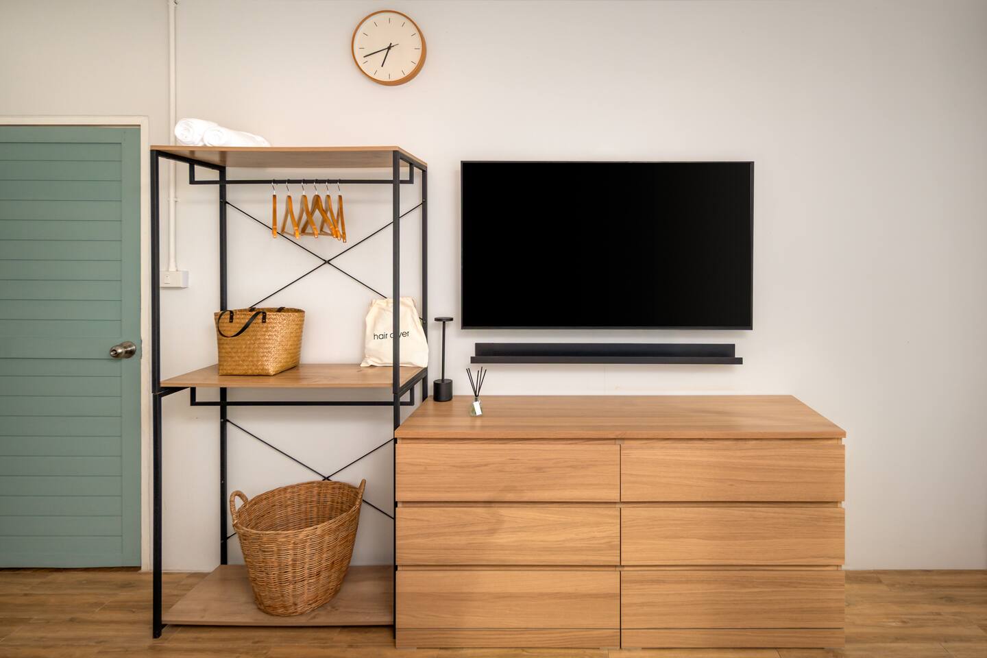1 King, 2 Singles & 1 Queen sofa-bed, sleeps 6. Private Living room & Kitchen, AC, WiFi, Smart TV, Netflix, Coffee/Tea. Shared pools, BBQ, Pool table, Cabana, Laundry, Beach access, Parking. Steps to Night Market. Perfect for family & friends seaside getaway. *Bank transfer available* ห้องติดสระว่ายน้ำ ติดชายหาด พร้อมห้องนั่งเล่น & ครัวส่วนตัว 1 King, 2 เตียงเดี่ยว, 1 โซฟาเบด พักได้ 4-6 ท่าน ครัวอุปกรณ์ครบ และเตาปิ้งย่างBBQ *รับชำระแบบโอนเงินผ่านธนาคาร*