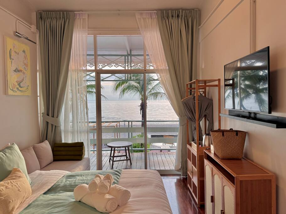 You’ll be staying in a private unit within our beachfront mansion. Please keep voices low after 10 PM and before 9 AM, both inside your unit and in shared areas, so everyone can enjoy the peaceful seaside atmosphere. Thailand is a tropical country, so insects are part of the natural environment. To stay comfortable, please close doors and windows, avoid leaving food out, and dispose of trash in the common bins to prevent mosquitoes or ants. 🌊 Beach Note: The shoreline changes with the tides and seasons — sometimes wide and walkable, other times gently touching the terrace. Each stage has its own charm, and we hope you’ll enjoy the natural rhythm of the sea.