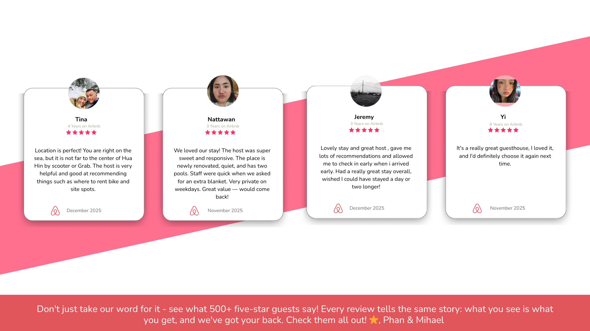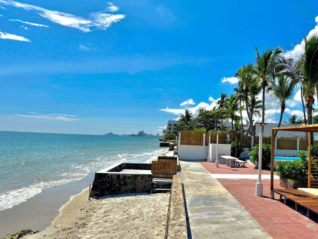 You’ll be staying in a private unit within our beachfront mansion. Please keep voices low after 10 PM and before 9 AM, both inside your unit and in shared areas, so everyone can enjoy the peaceful seaside atmosphere. Thailand is a tropical country, so insects are part of the natural environment. To stay comfortable, please close doors and windows, avoid leaving food out, and dispose of trash in the common bins to prevent mosquitoes or ants. 🌊 Beach Note: The shoreline changes with the tides and seasons sometimes wide and walkable, other times gently touching the terrace. Each stage has its own charm, and we hope you’ll enjoy the natural rhythm of the sea.