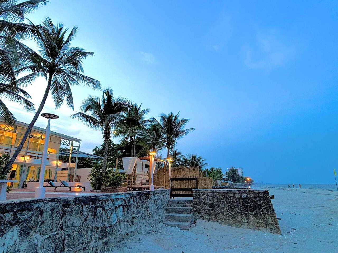 🌴🌊✨Experience Hua Hin like never before, The ocean sits right in front of your private unit in a charming beachfront mansion. Spend your days lounging on sunbeds under the cabana, Wake up to sunrise views, play beach volleyball or pool at night, and enjoy seaside BBQ and home-style cooking vibe moments. ★ PROPERTY HIGHLIGHTS ★ 🏖️Beachside access • Beachfront Unit : Wake up to Unobstructed sunrise views with sand and sea right outside the window • Social Fun: Pool table, Beach gear, volleyball & Paddle tennis • Seaside Dining : BBQ area for cooking & Enjoying meals by the waves • Tide levels vary (low tide = walkable beach; high tide = waterline terrace) 📍Prime Location Hua Hin 19 , an unbeatable location where you will stay in the heart of the beachfront Lifestyle close to the sand, the sea, and just a short walk to exploring Lively & Friendly Locals from the Thai Night Market and Local restaurants & Cafe making it ideal for Families, couples, or Group of Friends. Tool (🌟🌟🌟🌟🌟): " I stayed at this beautiful beachfront wooden house and absolutely loved it! The location is perfect, right by the sea with easy access to Hua Hin town." 🛋️PRIVATE LIVING CORNER • Connect to Balcony with Full ocean views • Enjoy morning coffee from your in-unit coffee station + Mini fridge • Smart TV w/ Youtube and Netflix set up is ready for you 🛏️ STUDIO SEASIDE RETREAT : KING COMFORT View of the beach , King bed with Cozy setup, extra pillows & blankets, soft linens, blackout shades, closet storage and blackout curtains to ensure a deep and restful sleep. ✨ Multi-Use Desk: Perfect for work with Super Fast WiFi 500Mbps and Features a mirror for Makeup-ready. ☀️ OUTDOOR LOUGING Amazing Common Spaces : Communal kitchen, Two pools, Pool table with Beach view,a Beach Cabana and Sunbeds to lounge all day. 🗺️ Nearby Attractions 🏰 Royal Palace – 5 min 🌙 Queen’s 19 Rai Night Market – next door 🌙 Hua Hin Night Market – 6 min 🏌️ Royal Hua Hin Golf Course – 10 min 🛒 Villa Market 6 min | Makro 7 min 🪁 Market Village – 10 min 🌌 Cicada Night Market – 15–20 min ☕ Beachfront Cafés & Restaurants – 5 min 🚕Grab/Bolt rides make getting around super easy 🐾 Pet-Friendly Your furry friends are welcome! Dogs (₤50 fee) can enjoy the fenced backyard, with water bowls and a safe space to play. ✔ Extras ✅ Free parking ✅ Washer & dryer ✅ Essentials provided (towels, linens, toiletries) ✅ Baby gear available on request (crib, high chair, bath) ✅ Long-term stays welcome" 📝 Things to Note 🌴 Private yet close – beachfront home away from crowds, minutes from town 🌊 Beach width varies by tide 🦟 Mosquitos common outdoors – repellent provided ❄️ Keep doors closed for AC and bug control 🤝 Respect quiet hours – family events only 📜 Fully compliant with Thai rental regulations 💡 Monthly stays – utility deposit refunded after use Relax, celebrate, and Feel the beach vibe — everything’s ready, from cookware to coordination. 👉 Add to wishlist and click ❤️ to book your private beachfront retreat today!