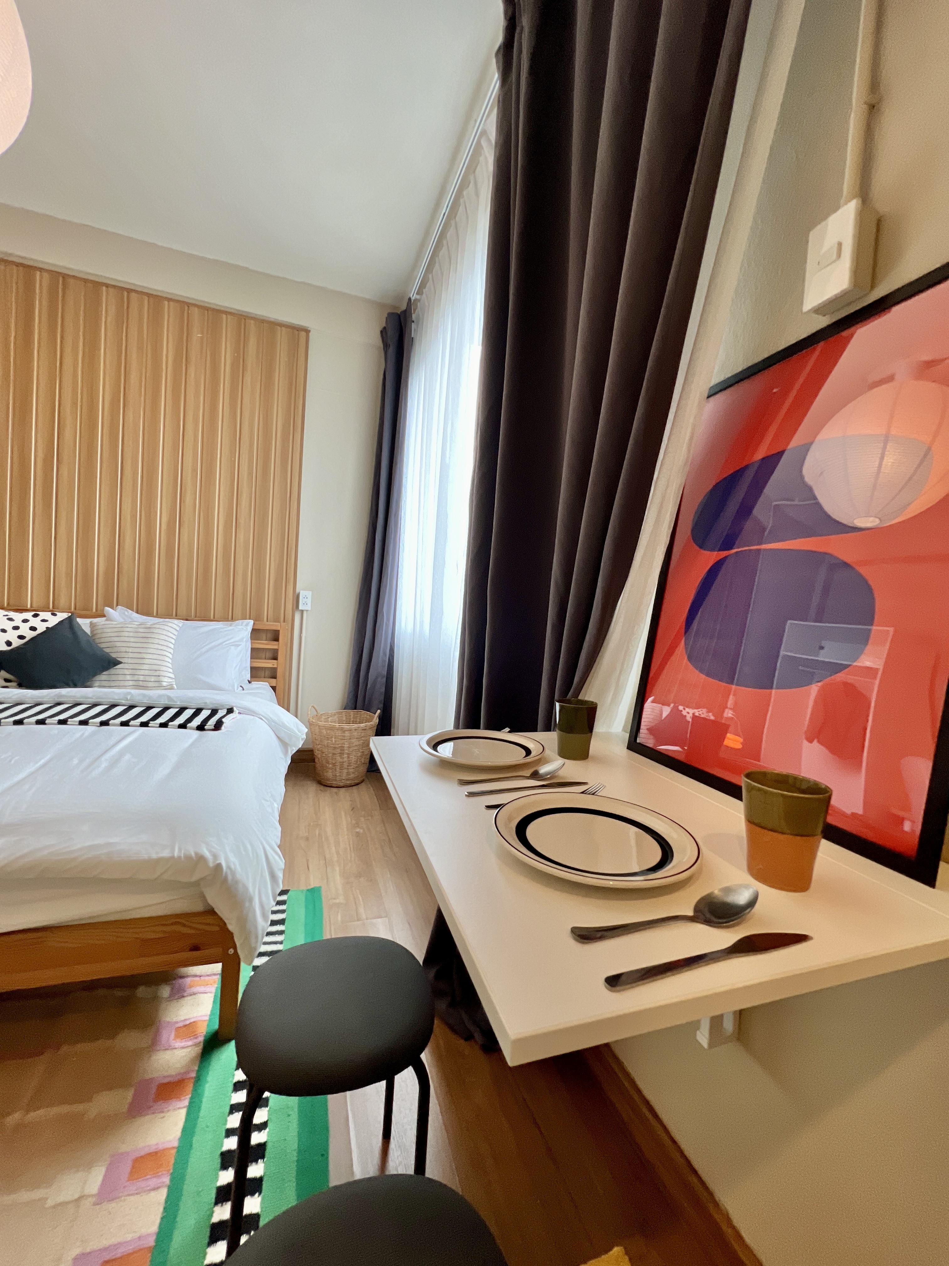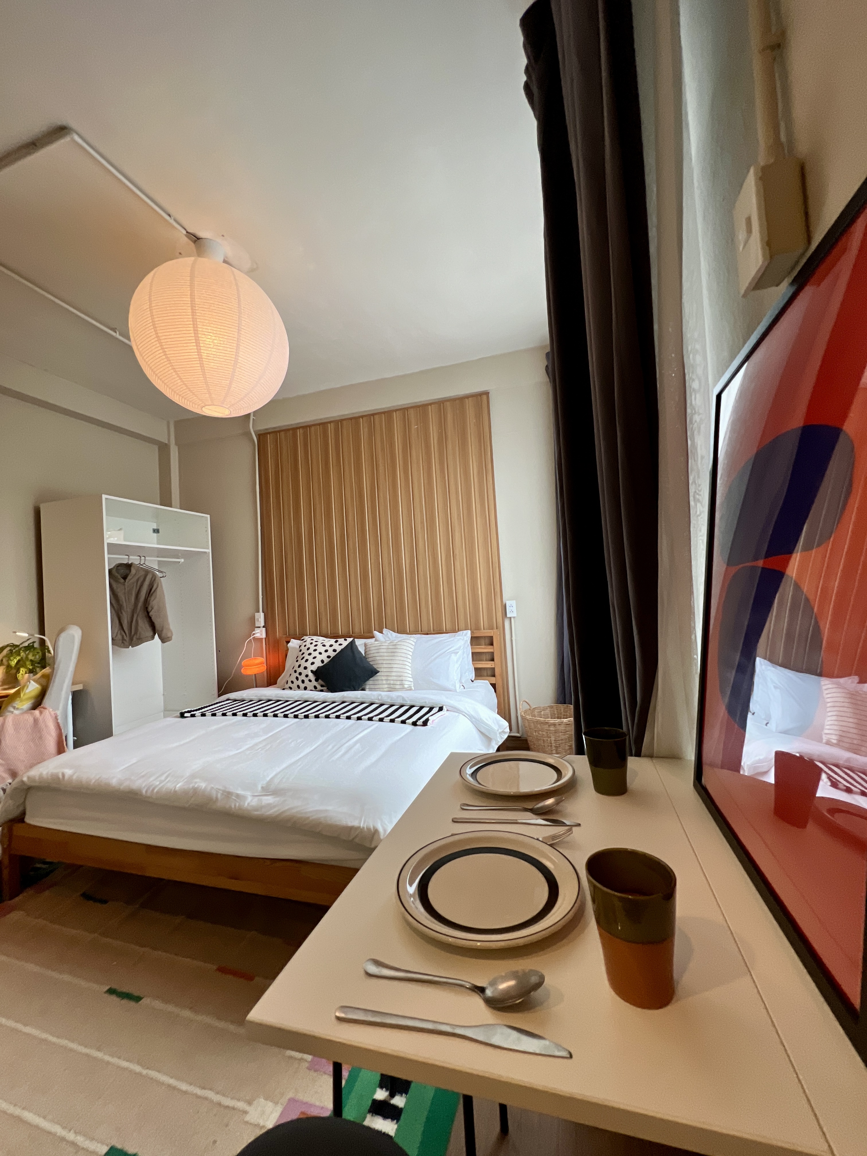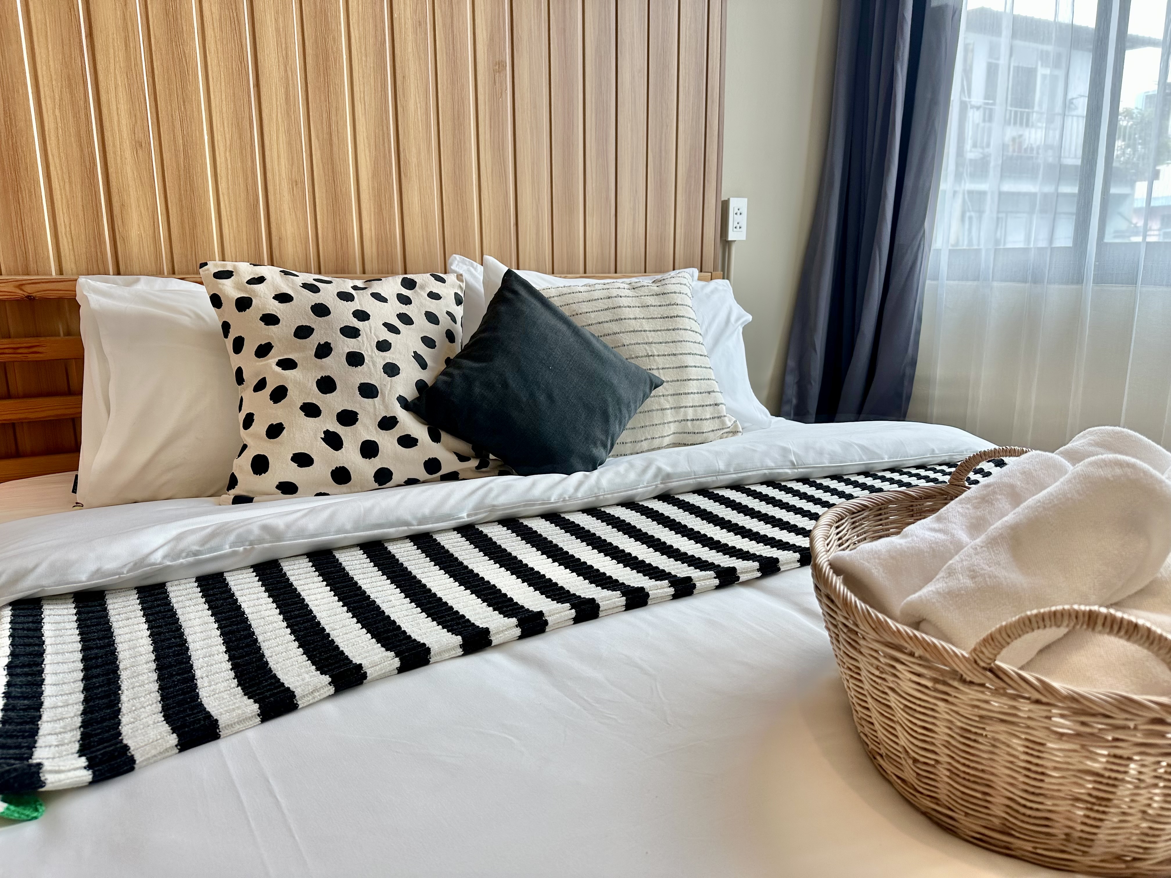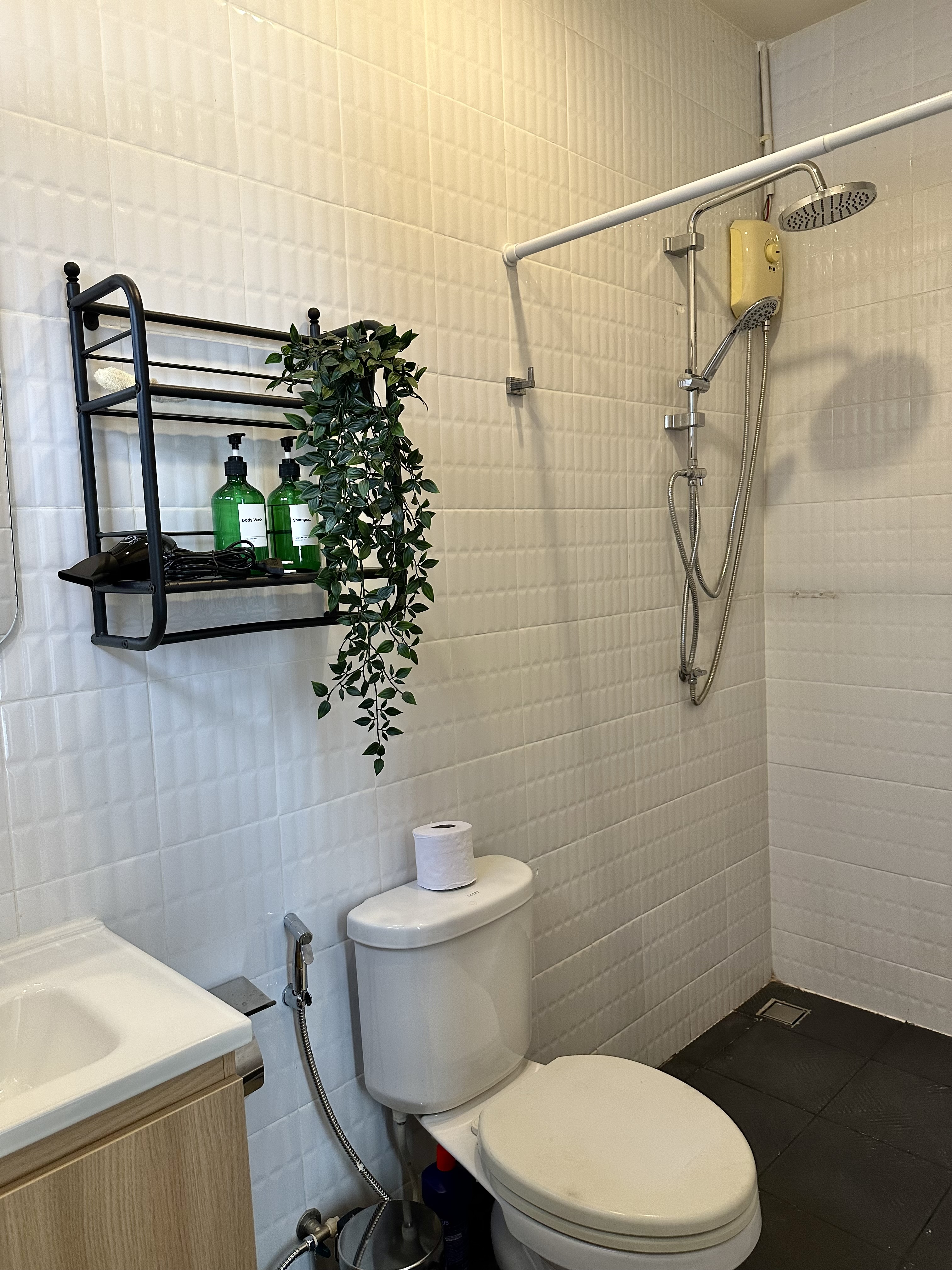Enjoy a private, comfy and large king-bed room in a peaceful guesthouse tucked in the vibrant Ekkamai neighborhood – perfect for digital nomads, couples, or short-term explorers. 🔑 Self check-in - No lockboxes, no keys! - Check in anytime, with no fuss, just your persona PIN number for the main entrance and your bedroom doors. 💤 Your Private Room Includes: • King-size bed with hotel-quality linens • En-suite bathroom with hot shower, fresh towels & toiletries • Quiet, powerful air conditioning • Smart TV with Netflix • High-speed Wi-Fi + dedicated work desk • Warm lighting and peaceful atmosphere 🍽 Shared Kitchen & Dining Area: • Stove, basic cookware & utensils • Coffee machine ☕ • Fridge + freezer • Dining table for meals or connecting with other travelers • Complimentary laundry service (or use the machines yourself) 🧩 Shared Hallway Lounge (Just Outside Your Door): • Board games and card games to enjoy with your companion or other travelers • Travel guides, Bangkok maps & local recommendations • Space to relax or flip through a book while you plan your day • Designated shoe-removal zone to help keep rooms clean and tidy 🧼 Included Guest Services: • Daily housekeeping (just request it!) • Complimentary laundry – we wash and dry for you • Friendly, responsive host support during your stay 📍 Prime Ekkamai Location – With a Local Twist: Located just steps from BTS Ekkamai and surrounded by amazing cafés, local markets, and shopping malls, you’ll love the convenience of this walkable neighborhood. Please note: Being close to Sukhumvit Road and lively local markets does mean you might hear the vibrant sounds of Bangkok, especially during peak hours. Most guests find it manageable, and earplugs are available for light sleepers. But for travelers who want to immerse themselves in real Bangkok life, this spot offers the perfect balance of local flavor and central convenience — all with quick access to the BTS, shopping, nightlife, and street food. 🎒 Optional Extras: • Early check-in / Late check-out (when available) • Airport pick-up & drop-off • Secure luggage storage for early arrivals or late departures