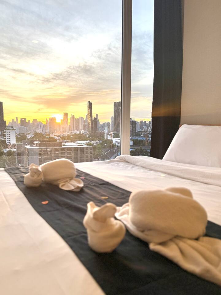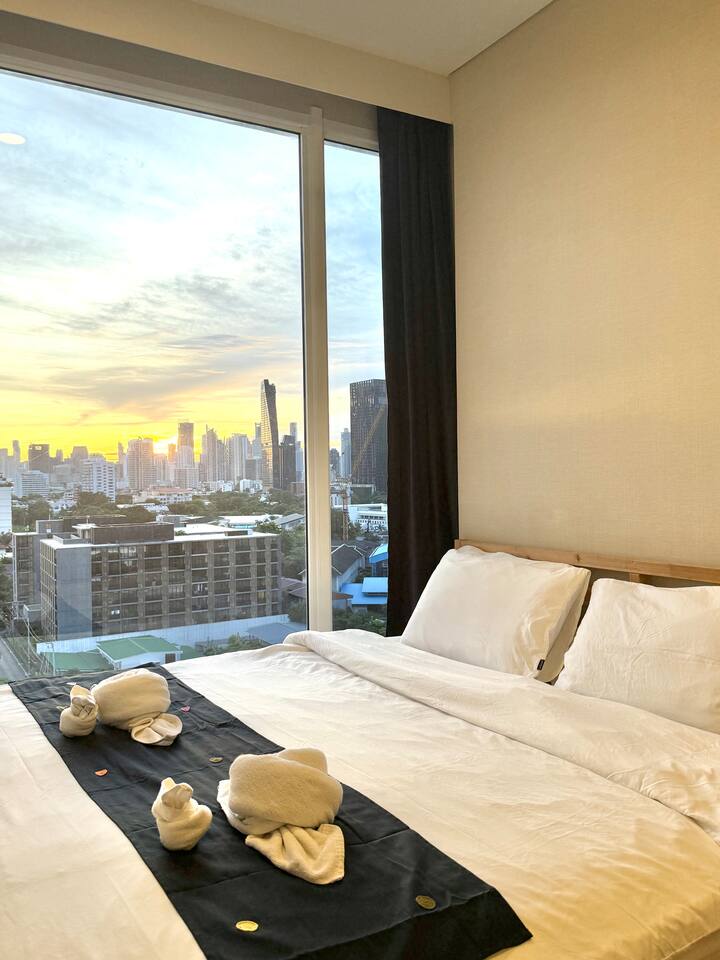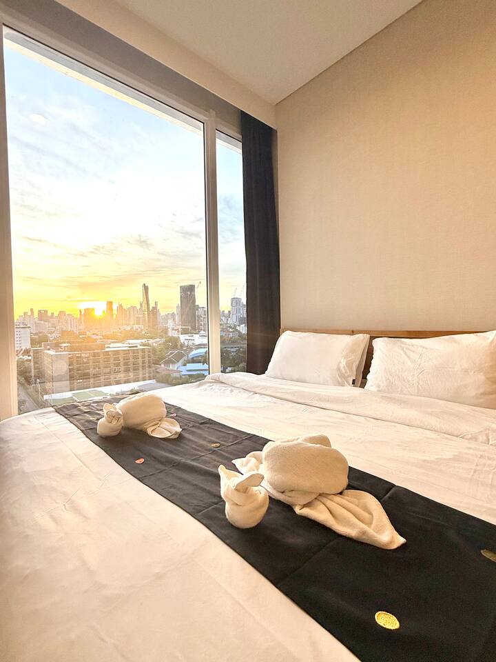 ✨ Wake up to stunning city skyline views in the heart of Bangkok. You’ll love: - 🛏 A king size bed for a restful night’s sleep - 🛋 Bright living area for relaxing after a day in the city - 🍳 Well-equipped kitchen for cooking your favorite dish. - ⚡ High-speed Wi-Fi for optimal work. - 🏋♂ Rooftop gym with premium fitness equipment - 🛁 Rooftop pool and hot tub with stunning views of the Bangkok skyline -📍 Prime Bangkok location close to the BTS, attractions, shopping, and dining.