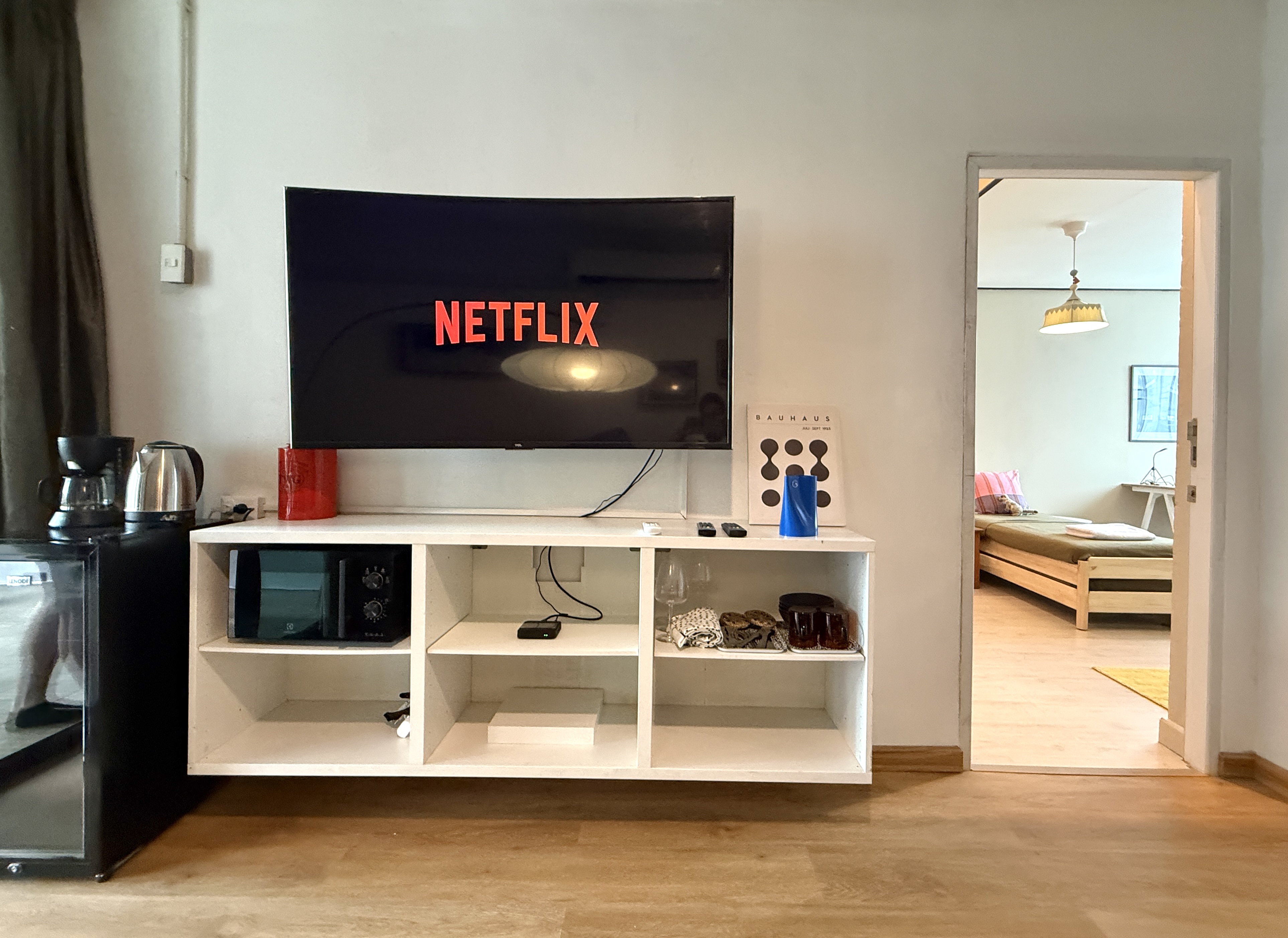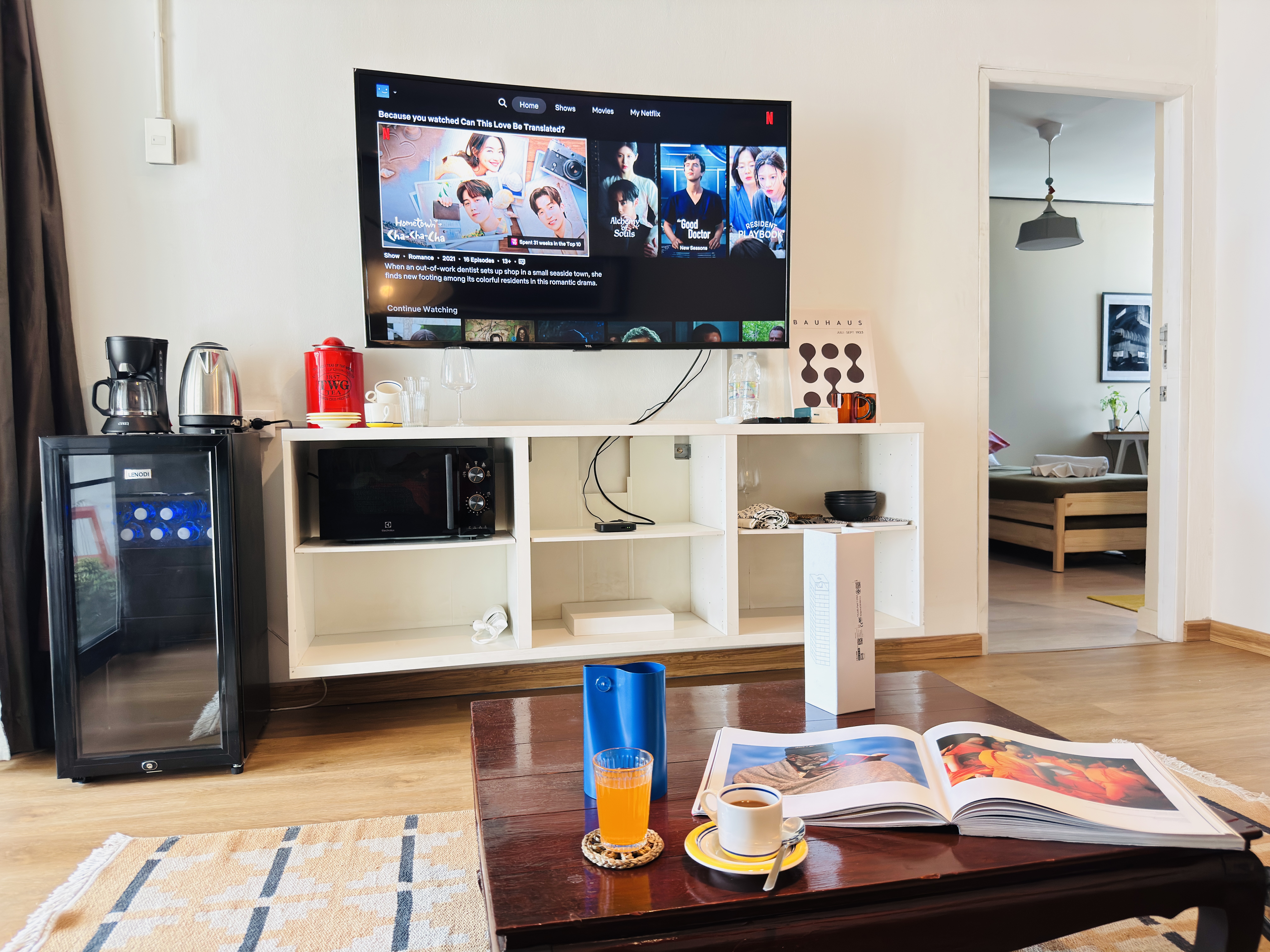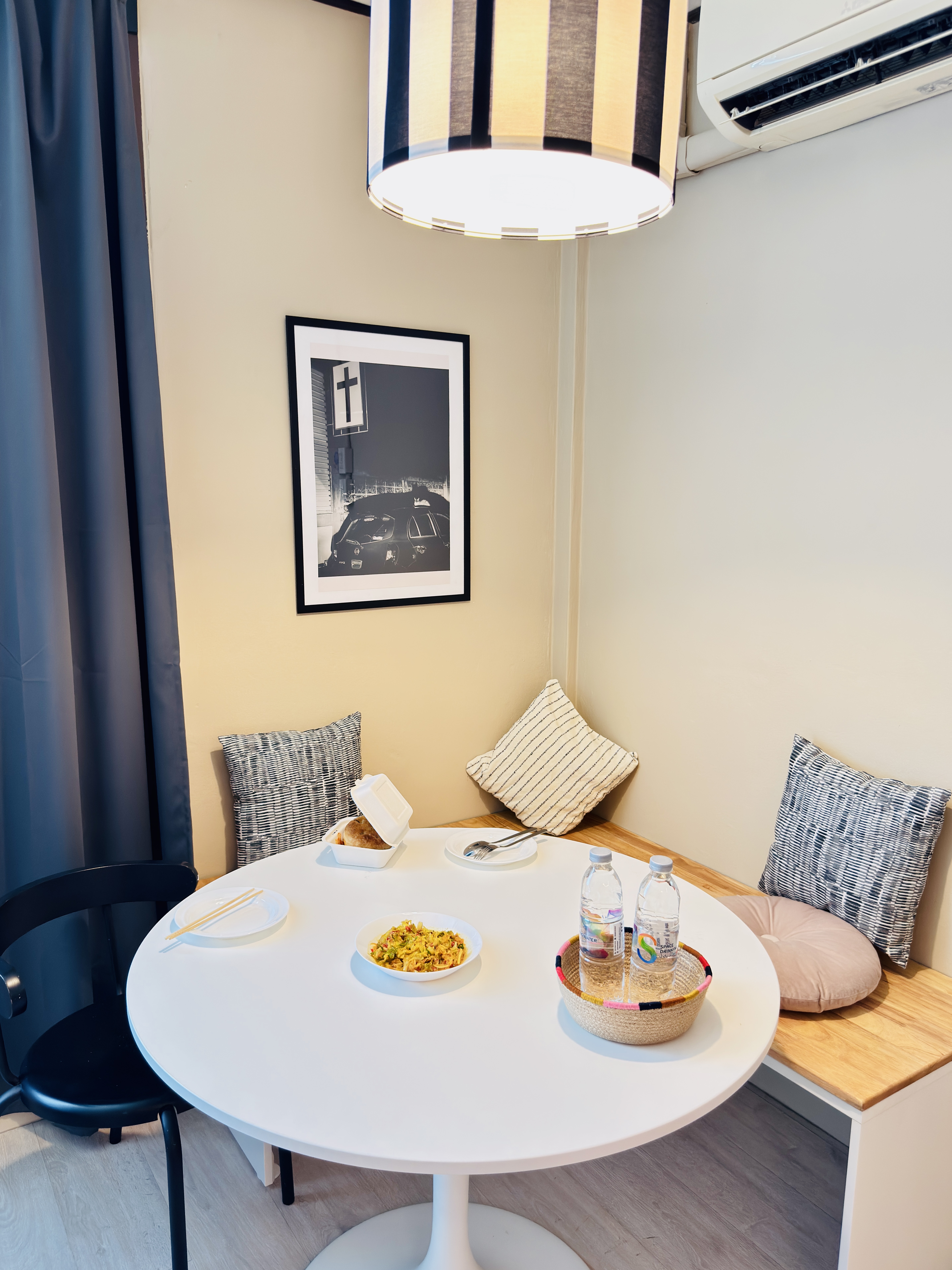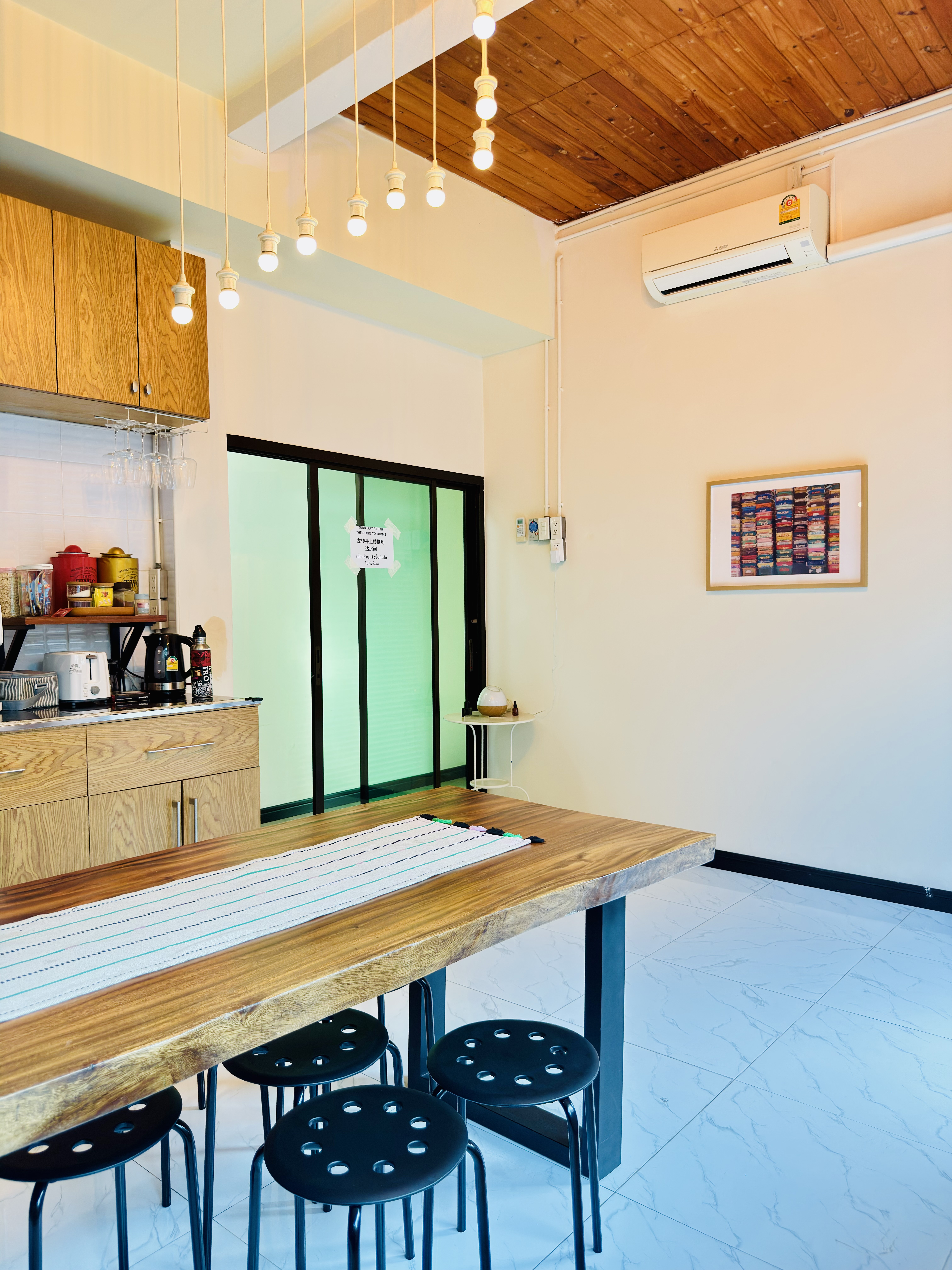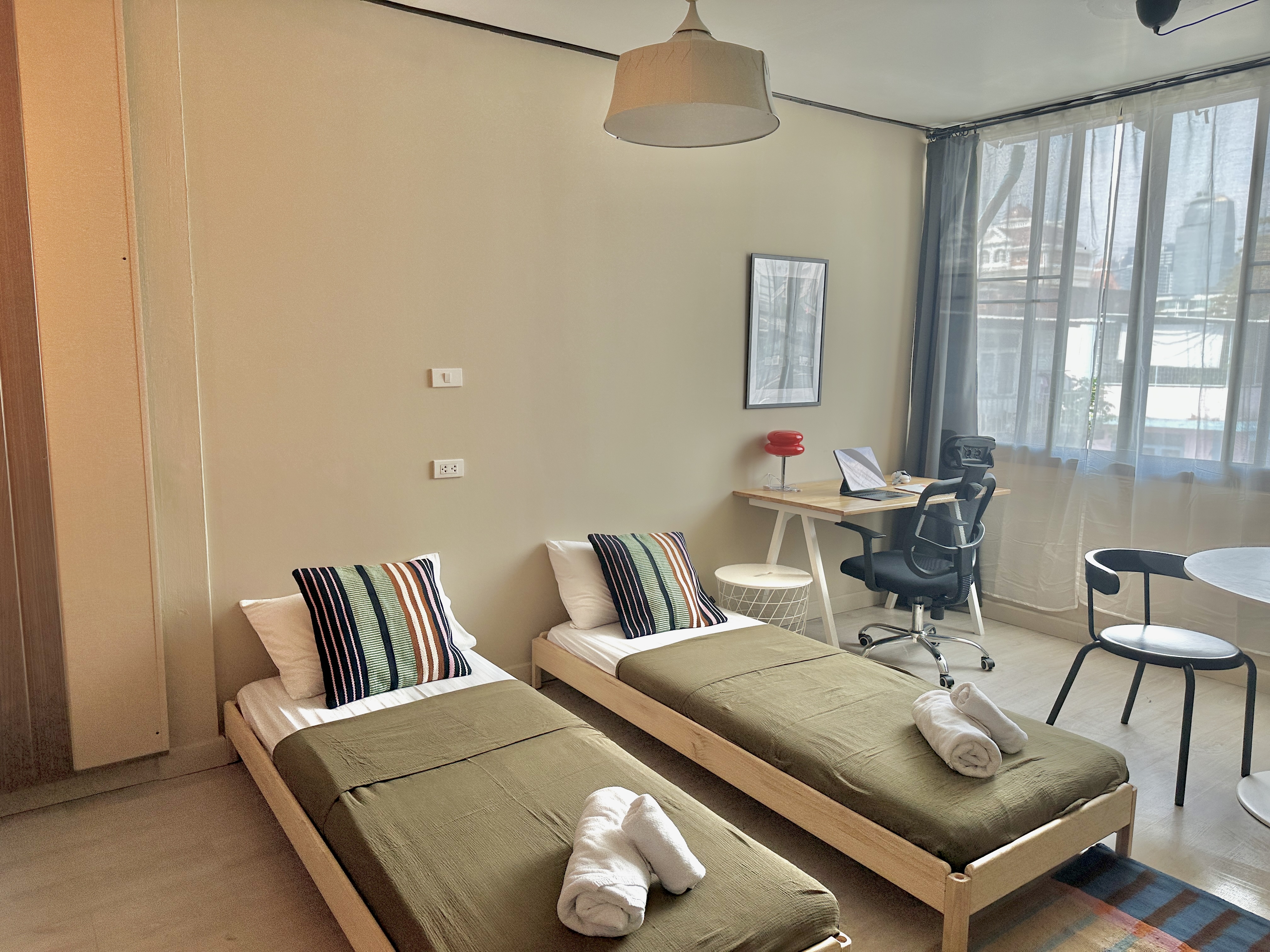 The unit offers a thoughtfully Bright and Airy Layout 48m² (517ft²) with separate Living room Balcony Private KingSuite + Twin Beds within walking distance of everything convenient , clean and safe neighborhood ideal for solo stays, couples, or digital nomads. You’ll have full private access to: • 🛏 A dreamy king-size bed + 2 cozy single beds • 🚿 Your own en-suite bathroom with fresh towels & toiletries • ❄️ Quiet, powerful air conditioning • 💻 Fast WiFi + a proper work desk for deep focus • 📽️ Projector + Smart TV with Netflix for movie nights • 🛋️ Large private living room + balcony • 🌙 Warm lighting and a peaceful atmosphere It’s your personal retreat in the middle of the city — quiet, cozy, and fully equipped. ⸻ 🍽 Shared Facilities (Feel at Home) Enjoy our clean and fully equipped shared kitchen, ideal for quick breakfasts or simple cooking: • 🍳 Stove + basic cookware • ☕ Coffee machine (your morning ritual sorted) • 🧊 Fridge & freezer • 🍽 Large communal dining table • 🔄 Washer & dryer with free laundry service if you prefer we do it for you Everything is designed to make longer stays easy and stress-free. ⸻ 🧹 Services Included • 🧼 Daily housekeeping (just request it!) • 🧺 Complimentary laundry — we wash and dry for you • 🤝 Friendly support throughout your stay ⸻ 📍 Location (Ekkamai Convenience + Local Charm) You’re tucked inside a small, authentic Thai lane in Sukhumvit 42, giving you a peaceful and very “local Bangkok” feel — while still being incredibly central. Just a short walk away: • 🚆 BTS Ekkamai (your gateway to the entire city) • 🛍 Gateway Ekkamai Mall, Major Cineplex & cafés • 🍜 Delicious street food market active during the day • 🍽 Dozens of restaurants, trendy spots & hidden gems • 🚗 Immediate access to Rama 4 Road for quick Grab/taxi trips It’s calm when you need it, vibrant when you want it — the best of both worlds. ⸻ ✨ Optional Add-Ons Make your stay even smoother with our optional services: • ⏰ Early check-in / Late check-out (when available) • 🚐 Airport pick-up & drop-off • 🧳 Secure luggage storage for early arrivals or late departures