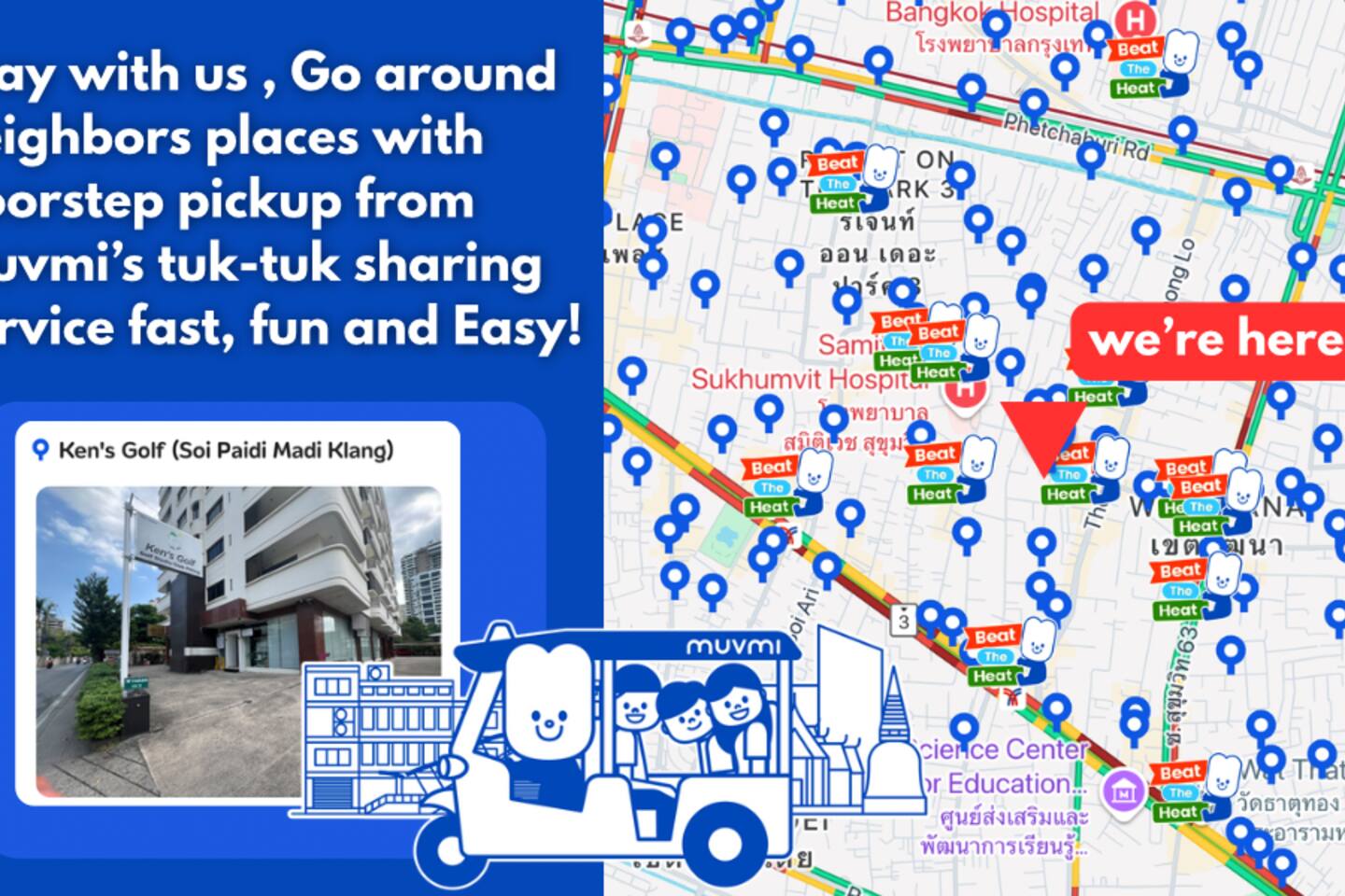 Navigating Bangkok from our Thonglor location is convenient and straightforward. Whether you prefer public transport, taxis, or ride-sharing services, you have plenty of options to explore the city. Public Transport Options BTS Skytrain: The nearest station is Thonglor BTS, just 10-15 min away. It's a fast and efficient way to travel, connecting you to major areas like Siam, Silom, and Sukhumvit. MRT (Metropolitan Rapid Transit): Complementing the BTS, the MRT provides access to areas like Chinatown and Phahon Yothin. Transfer from the BTS to the MRT at stations like Asok or Mo Chit. River Boats: For destinations near the Chao Phraya River, river boats offer a scenic and efficient mode of transport. Taxi and Ride-Sharing Services Taxis: Readily available and can be hailed directly from the street. Ensure the meter is on to avoid overcharging. Motorbike Taxis: Ideal for short distances, especially during rush hour. Always agree on the fare beforehand. Tuk-Tuks: These iconic three-wheelers are great for short trips. Remember to negotiate the fare before starting your journey. Grab: An app-based service similar to Uber, offering both car and motorbike rides. It's convenient and provides fare estimates. MuvMi-An app-based service similar to Grab but with a Thai twist. Hail an electric TukTuk you can ride privately or share with others for the cheapest 3/4 wheel transportation in BKK. Tips for Navigating Bangkok Rush Hours: Bangkok's traffic can be heavy during rush hours (7-9 AM and 4-7 PM). Plan your travel accordingly. Maps and Apps: Utilize GMaps or local transport apps for navigating routes and checking traffic conditions. Stay Hydrated: The city can be hot and humid, so carry water with you. Walking: Exploring Thonglor on foot can be a delightful experience, with many cafes, shops, and local attractions.