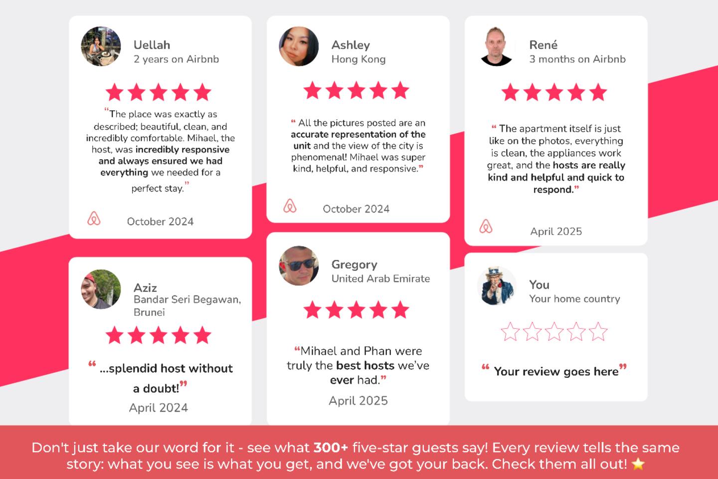 ★ PROPERTY HIGHLIGHTS ★ 90 sqm, tranquil 2‑bedroom near BTS Nana & Benjakitti Park, perfect for couples or remote workers. Tucked off the main street for quiet, but just minutes to 7‑Eleven, Terminal 21, and vibrant nightlife. ★ LIVING ROOM & WORKSPACE ★ City & pool-view balcony Cozy seating & smart TV with Netflix Dedicated workspace with comfortable chair and high-speed Wi‑Fi ★ BEDROOM ★ King-size bed with pillow variety (high & low) Large wardrobe, full‑length blackout curtains, and ambient dimmable lighting Full-length mirror, hair dryer, iron & ironing board provided ★ KITCHEN & LAUNDRY ★ Fully equipped kitchen: electric stove, coffee filter, basic condiments (oil, salt, sauces) Washer + essentials for laundry and longer stays Coffee & tea station—enjoy a morning brew on the balcony ★ BATHROOM ★ Bathtub + modern shower with strong pressure Complimentary toiletries and towels ★ AMENITIES & BUILDING PERKS ★ Pool & gym access Free parking + shuttle to BTS Nana (pending availability) Quiet building with residential feel. ★ NEARBY ★ 7‑Eleven, cafes & restaurants: 2 min walk Benjakitti Park & skybridge to Lumpini: 5 min walk with a direct gate access in mornings and evenings (otherwise soi 10 access is available). BTS Nana - 5min or 2 min shuttle Terminal 21 Mall / MRT Asoke: 10 min walk Nightlife on Soi 11: 7 min stroll