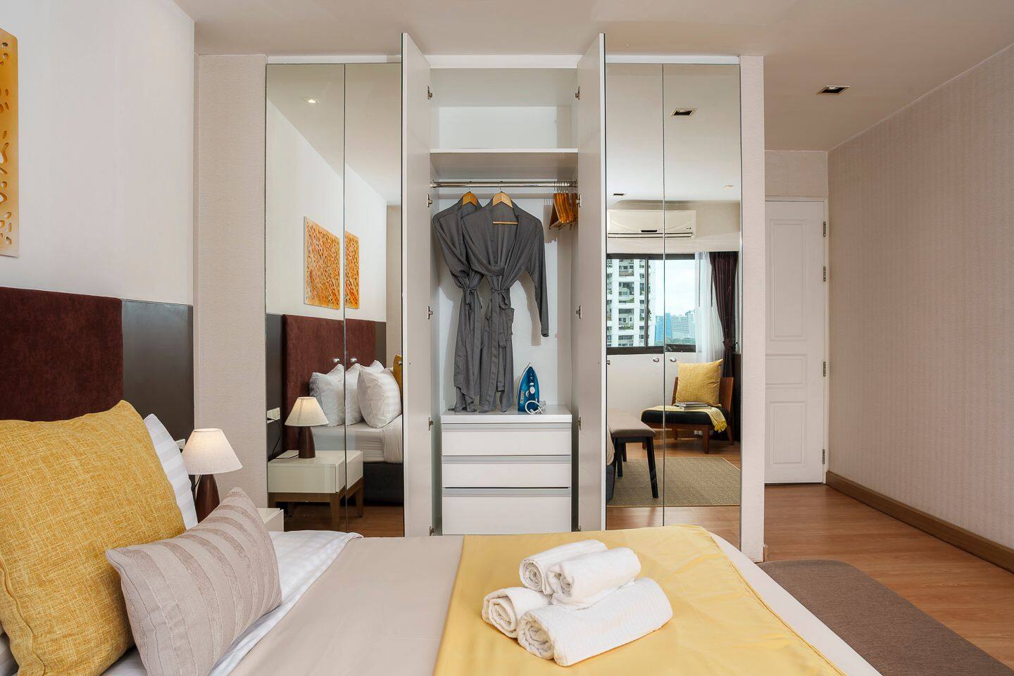 🌿 90 sqm, tranquil - 5 min to BTS Nana & Park, for couples/remote work. ✔ Comfy King bed + pillow & towel variety ✔ Bathroom + bathtub ✔ Kitchen w/ Washing machine & essentials ✔ Smart TV w/ Netflix,Fast 500 Mbps WiFi, workspace ✔ City view Pool & Gym ✔ Free Parking + shuttle BTS Near: 🛒 2min to 7-Eleven, cafes, and restaurant 🌳 5 min to Benjakitti Park (300m) 🎶 7 min to Soi 11’s bars, and speakeasies, clubs (500m) 🛍️ 10 min to Terminal 21 Mall / MRT Asoke Add wishlist, click the ❤️