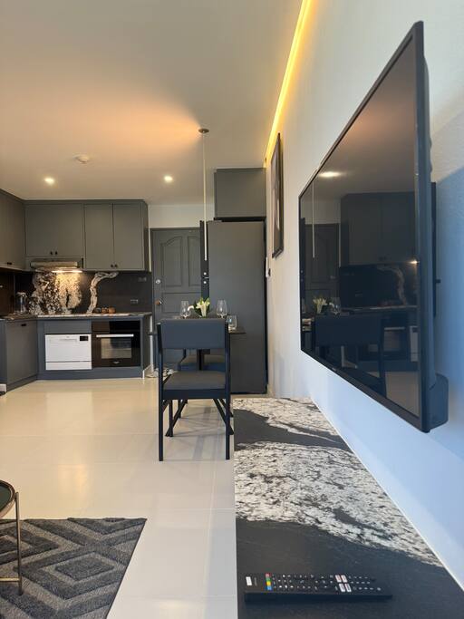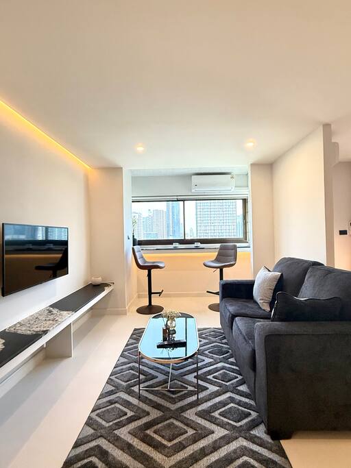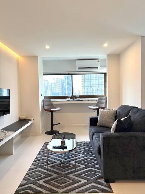 Stay in a quiet neighborhood, yet just 3 minutes from BTS Thonglor, this cozy haven offers a perfect relaxing escape with views. ✨ What Makes This Space Special? ✔ Stunning cityscape views from your private retreat ✔ A peaceful escape from the city's hustle and bustle ✔ Fully equipped kitchen—4-burner induction stove, oven, dishwasher, and all essentials for Chef cooking 🍽️ ✔ Luxury & stylish interiors designed for comfort ✔ Prime location—walking distance to shopping, dining, and transport.