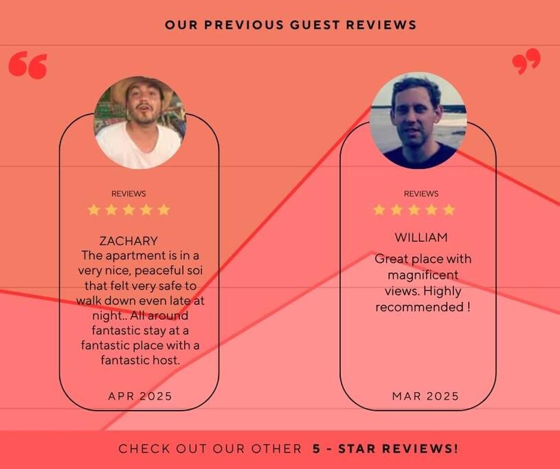 🔑 Self-check-in available; details sent 48h before arrival. 🏢 24/7 security & keycard access for safety. 🏊♂️ Free access to the pool & gym. 🚭 No smoking inside; fines may apply. 🔕 Quiet hours: 10 PM - 7 AM for a peaceful stay. - Cleaning available at an extra cost. Please remember that you’re staying in a residential building, not a hotel. Please treat the space with respect. If any problems arise, we will do our best to take action ASAP, but there is no one living on site 24/7. For monthly stays, a 2,000 THB utility prepayment is required. Any unused amount will be refunded, and excess usage will be billed. Compliance with Local Laws: In accordance with Thai law regarding short-term rentals, we request guests to direct any queries to our cohost for prompt assistance. Maintenance Updates: Please note that occasional maintenance of building facilities like the pool or gym may occur. We strive to inform our guests in advance whenever possible.