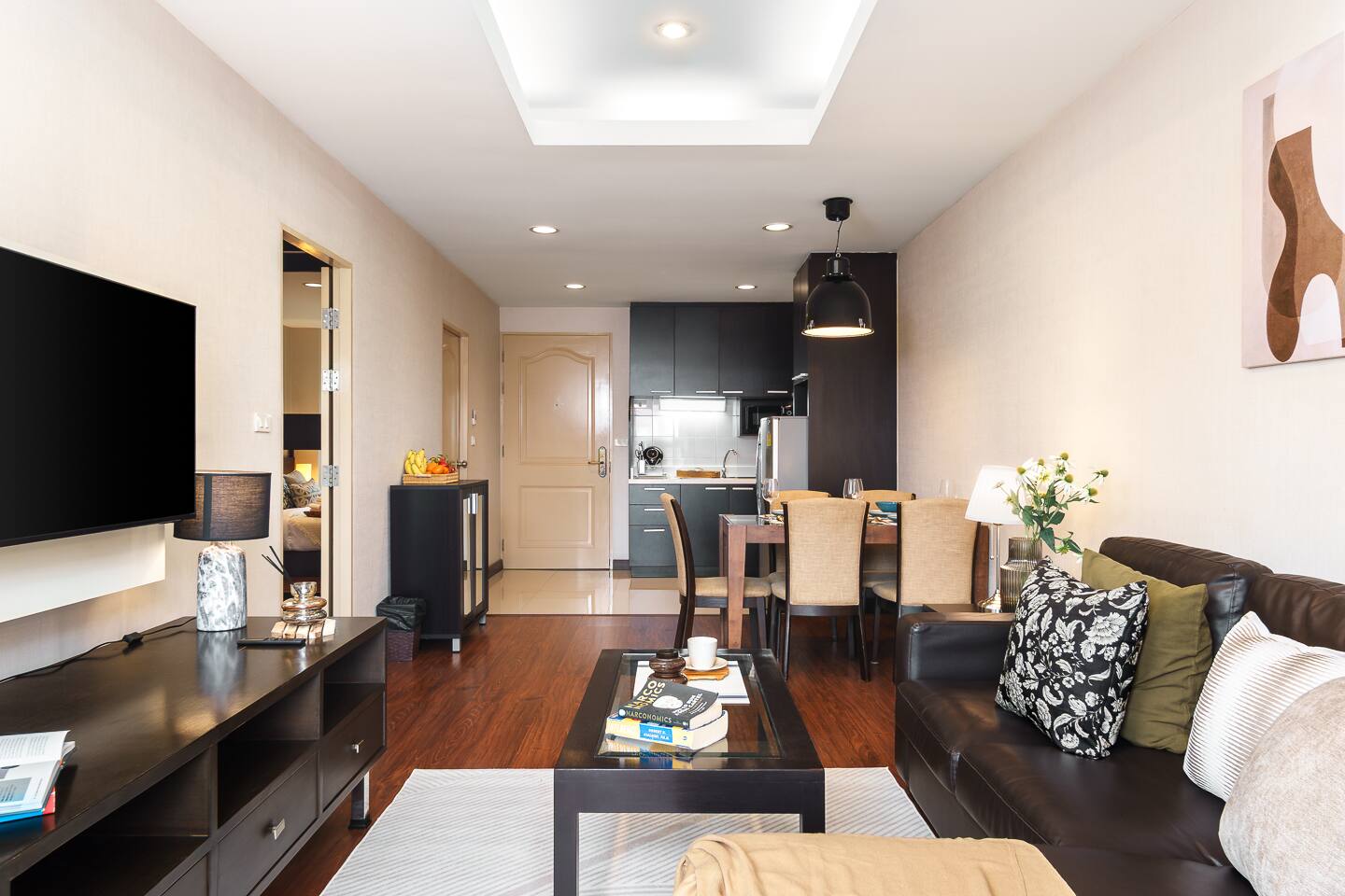 Imagine waking up in a sunlit apartment. Sip your morning coffee on a private balcony, plan your day at a dedicated workspace, and unwind in a king bed after exploring the city’s best food and nightlife. This is your home base in Thonglor, Bangkok’s most vibrant neighborhood. ★ PROPERTY HIGHLIGHTS ★ Unlike most modern condos, this home gives you room to breathe. While there’s no pool or gym, you’ll enjoy rare space, comfort, and privacy—perfect for longer stays, work trips, or anyone who values a true home-away-from-home. The building is managed by a Japanese team, ensuring spotless cleanliness, security, and professional service throughout your stay. 📍Prime Location Step outside and you’re in the heart of Thonglor, Bangkok’s trendiest neighborhood. Start your day with artisan coffee, stroll to Japanese bakeries, and end with cocktails at a rooftop bar—all within walking distance. ★LARGE LIVING ROOM★ Escape the cramped condos and stretch out in a sprawling living area that's twice the size of a typical apartment. With plenty of space to relax, work, or entertain, you'll feel right at home. Perfect for couples, solo travelers, or anyone who values comfort and convenience. ✔ Spacious Living space to entertain and unwind ✔ Large balcony connects living room and bedroom - ideal for morning coffee or evening drinks. ✔ 43" TV with Netflix and Super Fast 1000Mbs WiFi ✔ Proper Dining seating for 5 around a large dining table - ideal to catch up and entertain. ★ KING SIZE BEDROOM ★ Unwind in a spacious bedroom with a comfortable king-size bed and all the essentials for a restful stay. ✔ Workspace with desk and chair ✔ Full-length mirror and vanity area ✔ Spacious wardrobes for easy unpacking ✔ Hair dryer, iron, and ironing board ★ SPACIOUS & EQUIPPED KITCHEN: Cook Like a Local ★ Prepare your favorite meals in a fully equipped kitchen with everything you need: electric stove, Nespresso machine, cookware, utensils, and a selection of cooking essentials. ✔ Everything you need to cook ✔ Electric stove and Nespresso machine ✔ Full set of cookware and utensils ✔ Basic cooking supplies provided ★ BATHROOM + TUB: Your Private Oasis ★ Enjoy a comfortable bathroom with a bathtub, bidet, fresh towels, and complimentary toiletries. ★ CLOSE BY★ 🍽️ Food & Drinks: Indulge in a culinary adventure with top-rated Japanese restaurants, international cuisines, and trendy cafes just steps away. Donki Mall offers premium groceries and unique Japanese products. 🛍️ Shopping: The M-District (EmSphere, EmQuartier, Emporium) is a short BTS ride away, offering luxury shopping, gourmet groceries, rooftop bars, and a jazz lounge. 🏋️♂️ Fitness & Activities: Stay active with CrossFit, Muay Thai, Pilates, and yoga studios nearby, or unwind at local spas and wellness centers. For something unique, challenge yourself at Stone Goat Climbing Hall—Thonglor’s premier indoor climbing gym, perfect for both beginners and experienced climbers. 💎 Local Gems: Discover hidden gems like The Commons Thonglor, an upscale food hub with global cuisine and a wide wine selection, popular among creatives and trendsetters. ★ BEST AREA IN THE CITY: For you to enjoy★ Thonglor and Ekkamai are known for their vibrant nightlife, creative restaurants, and boutique bars. Experience the youthful energy and unique charm of this dynamic area, walk there and spend time with friends rather than a taxi jam! Book your stay today and discover why Thonglor is Bangkok's favorite neighborhood for locals and travelers alike! (Ask about our other listings in the building see below) airbnb.com/h/premierthonglorA airbnb.com/h/premierthonglorB airbnb.com/h/premierthonglorC airbnb.com/h/premierthonglorD airbnb.com/h/premierthonglorE