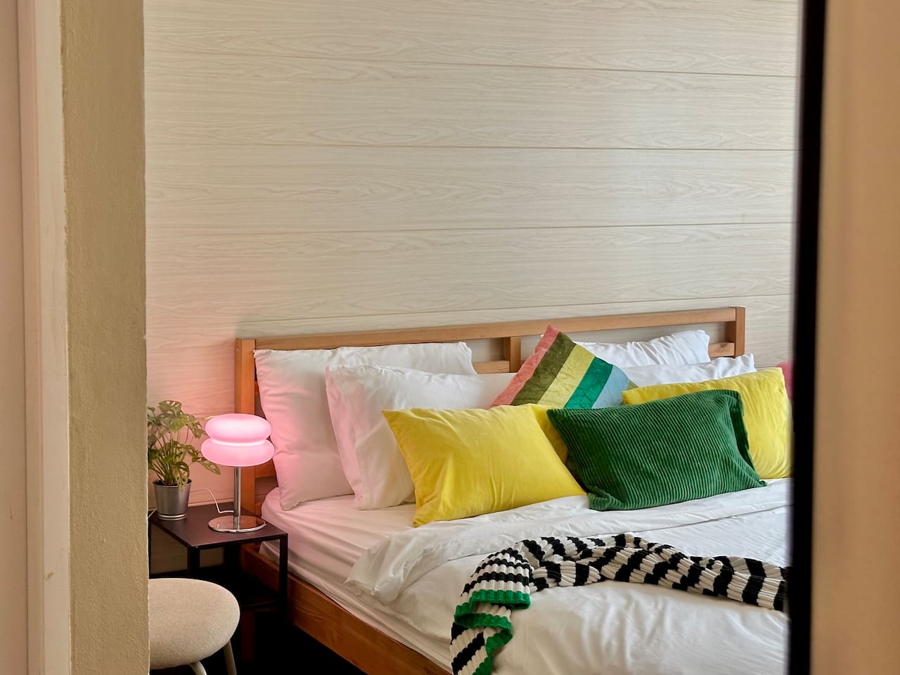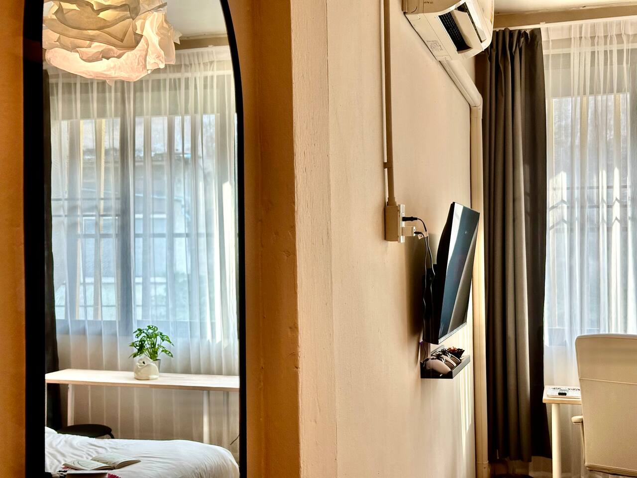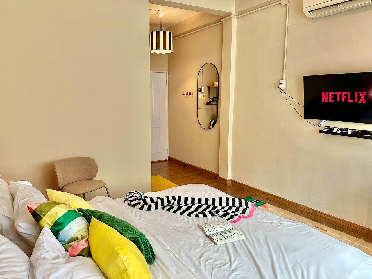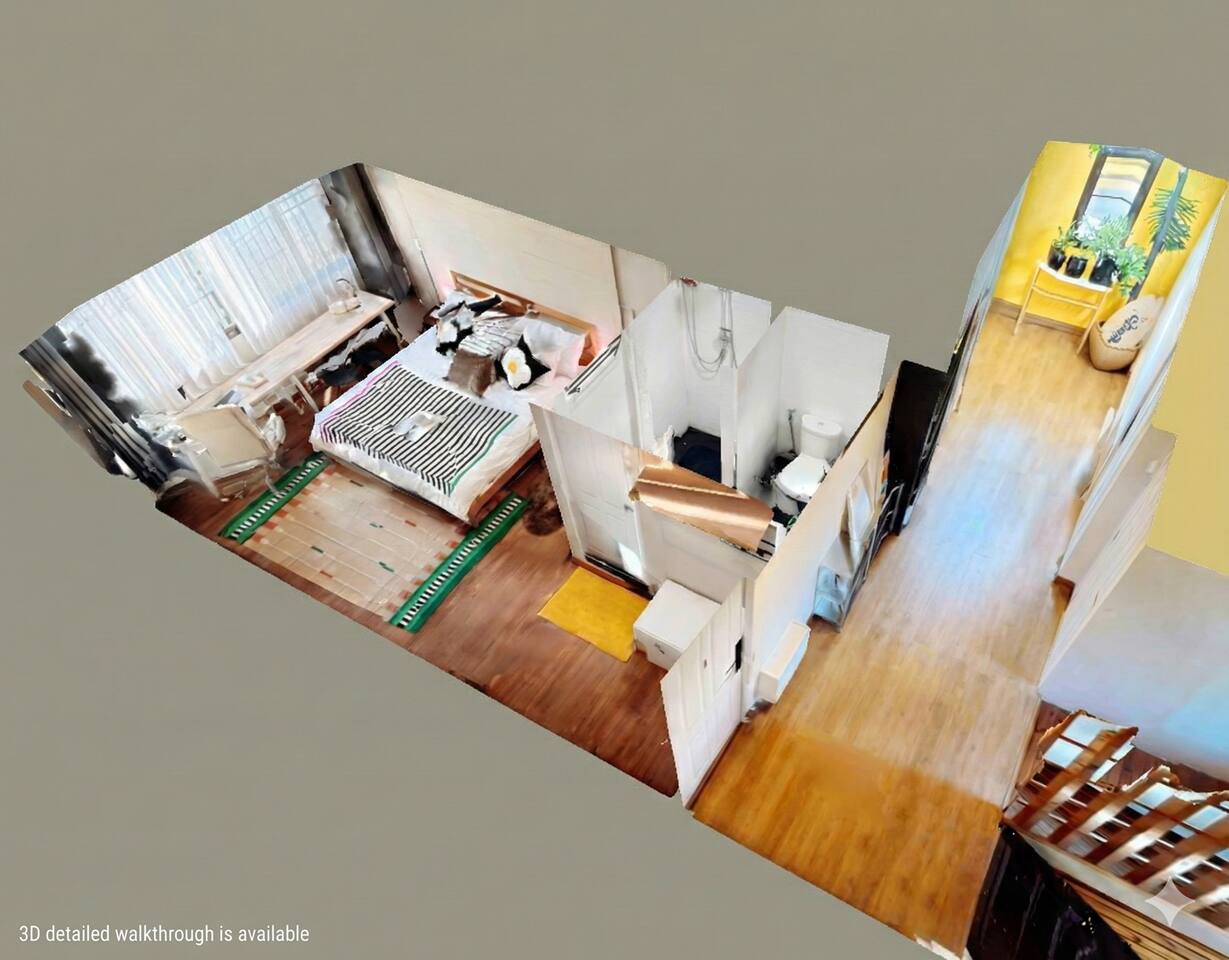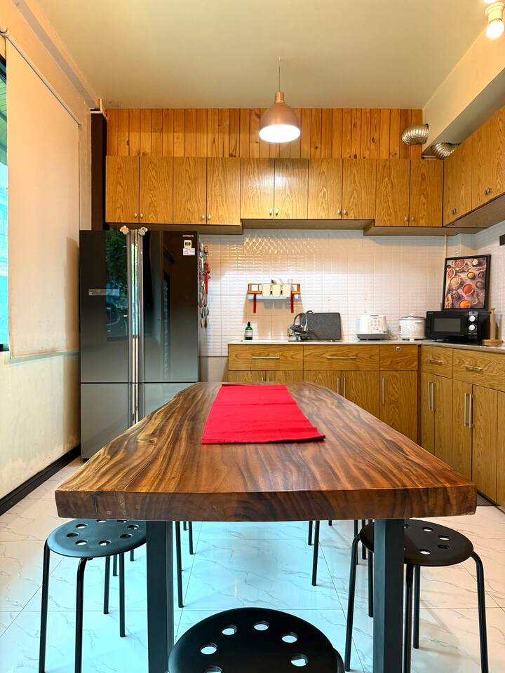 Enjoy a private, comfy and large king-bed room in a peaceful guesthouse tucked in the vibrant Ekkamai neighborhood – perfect for digital nomads, couples, or short-term explorers. 🔑 Self check-in - No lockboxes, no keys! - Check in anytime, with no fuss, just your persona PIN number for the main entrance and your bedroom doors. 💤 Your Private Room Includes: • King-size bed with hotel-quality linens • En-suite bathroom with hot shower, fresh towels & toiletries • Quiet, powerful air conditioning • Smart TV with Netflix • High-speed Wi-Fi + dedicated work desk • Warm lighting and peaceful atmosphere 🍽 Shared Kitchen & Dining Area: • Stove, basic cookware & utensils • Coffee machine ☕ • Fridge + freezer • Dining table for meals or connecting with other travelers • Complimentary laundry service (or use the machines yourself) 🧩 Shared Hallway Lounge (Just Outside Your Door): • Board games and card games to enjoy with your companion or other travelers • Travel guides, Bangkok maps & local recommendations • Space to relax or flip through a book while you plan your day • Designated shoe-removal zone to help keep rooms clean and tidy 🧼 Included Guest Services: • Daily housekeeping (just request it!) • Complimentary laundry – we wash and dry for you • Friendly, responsive host support during your stay 📍 Prime Ekkamai Location – With a Local Twist: Located just steps from BTS Ekkamai and surrounded by amazing cafés, local markets, and shopping malls, you’ll love the convenience of this walkable neighborhood. Please note: Being close to Sukhumvit Road and lively local markets does mean you might hear the vibrant sounds of Bangkok, especially during peak hours. Most guests find it manageable, and earplugs are available for light sleepers. But for travelers who want to immerse themselves in real Bangkok life, this spot offers the perfect balance of local flavor and central convenience — all with quick access to the BTS, shopping, nightlife, and street food. 🎒 Optional Extras: • Early check-in / Late check-out (when available) • Airport pick-up & drop-off • Secure luggage storage for early arrivals or late departures
