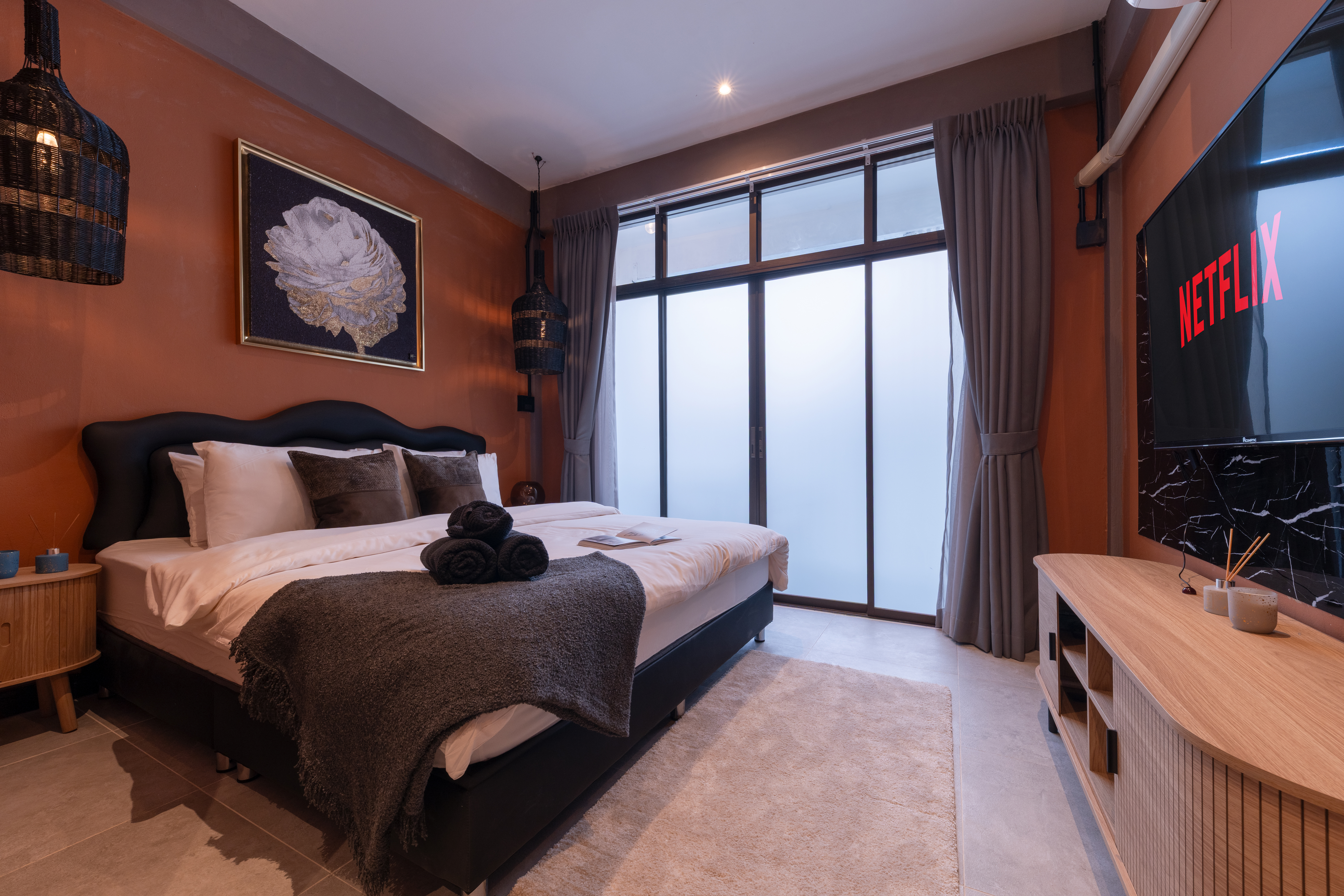 🛏 The Room – Your Private Space at The Sabai Residence 38 A thoughtfully designed private ensuite room in a fully renovated townhouse, ideal for solo travelers, couples, and remote workers seeking comfort, privacy, and a calm residential setting. The room blends modern design with cozy details, offering a relaxing retreat whether you’re here for a short stay or longer. ✦ Sleep King-size bed with quality linens and pillows for a comfortable night’s rest. ✦ Work & Relax Smart TV Fast Wi-Fi Comfortable seating Private balcony for fresh air and quiet moments ✦ Bathe Private enclosed bathroom Walk-in shower Fresh towels & toiletries ✦ Store Wardrobe space for clothes and luggage In-room safe 🏡 The Residence The Sabai Residence 38 is a fully renovated 3-level townhouse with just four private ensuite rooms, creating a calm, low-density living environment. Guests share spacious and well-maintained common areas, including a fully equipped kitchen, three living rooms, and a large dining area. A lift and luggage lift make arrivals and longer stays easy, and common areas are regularly cleaned for comfort and convenience. This residence is designed for quiet, respectful stays. 📍 Sukhumvit 38 – Thong Lo Lifestyle A peaceful residential street just steps from the energy of Thong Lo—famous for its street food, cafés, and international restaurants. Local shops and daily conveniences are all within walking distance.