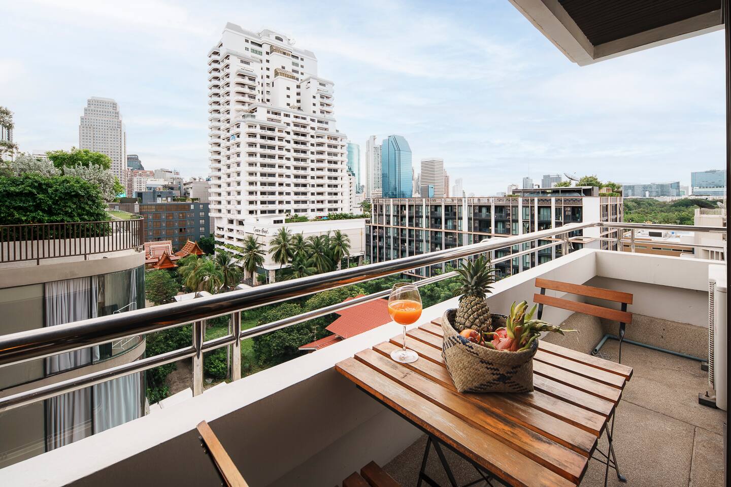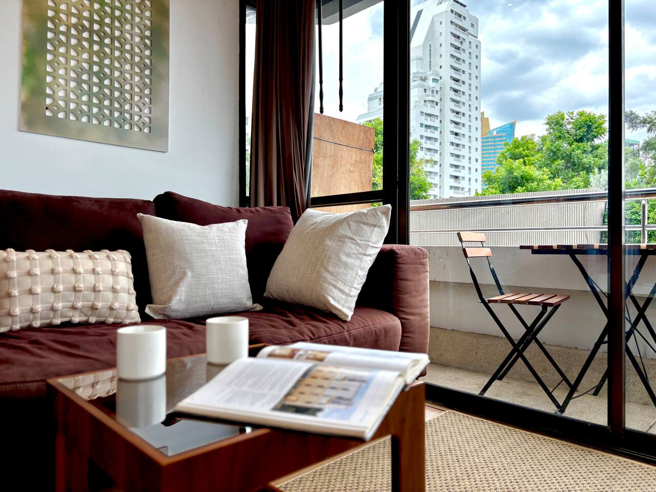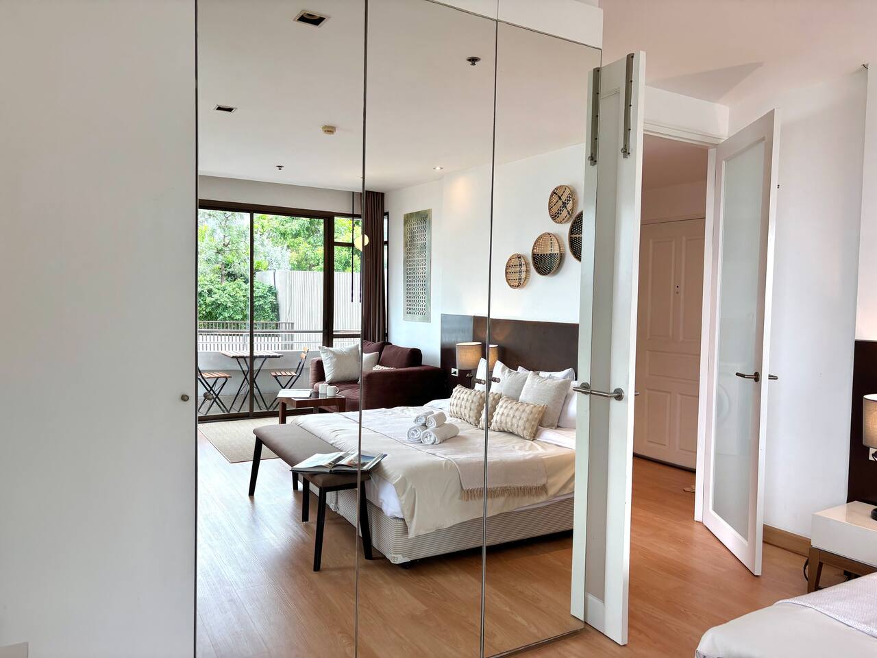 ★ PROPERTY HIGHLIGHTS ★ 54 sqm, tranquil 1‑bedroom near BTS Nana & Benjakitti Park, perfect for couples or remote workers. Tucked off the main street for quiet, but just minutes to 7‑Eleven, Terminal 21, and vibrant nightlife. ★ LIVING ROOM & WORKSPACE ★ City and park view balcony Cozy seating & smart TV with Netflix Dedicated workspace with comfortable chair and high-speed Wi‑Fi ★ BEDROOM ★ King-size bed with pillow variety (high & low) Large wardrobe, full‑length blackout curtains, and ambient dimmable lighting Full-length mirror, hair dryer, iron & ironing board provided ★ KITCHEN & LAUNDRY ★ Fully equipped kitchen: electric stove, coffee filter, basic condiments (oil, salt, sauces) Washer + essentials for laundry and longer stays Coffee & tea station—enjoy a morning brew on the balcony ★ BATHROOM ★ Bathtub + modern shower with strong pressure Complimentary toiletries and towels ★ AMENITIES & BUILDING PERKS ★ Pool & gym access Free parking + shuttle to BTS Nana (pending availability) Quiet building with residential feel. ★ NEARBY ★ 7‑Eleven, cafes & restaurants: 2 min walk Benjakitti Park & skybridge to Lumpini: 5 min walk BTS Nana - 5min or 2 min shuttle Terminal 21 Mall / MRT Asoke: 10 min walk Nightlife on Soi 11: 7 min stroll