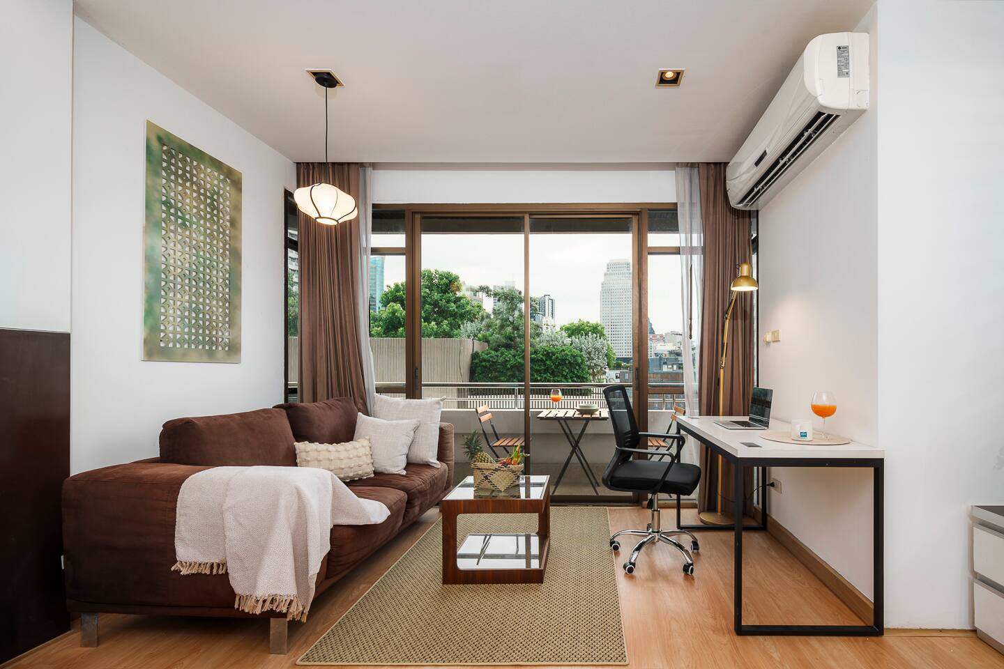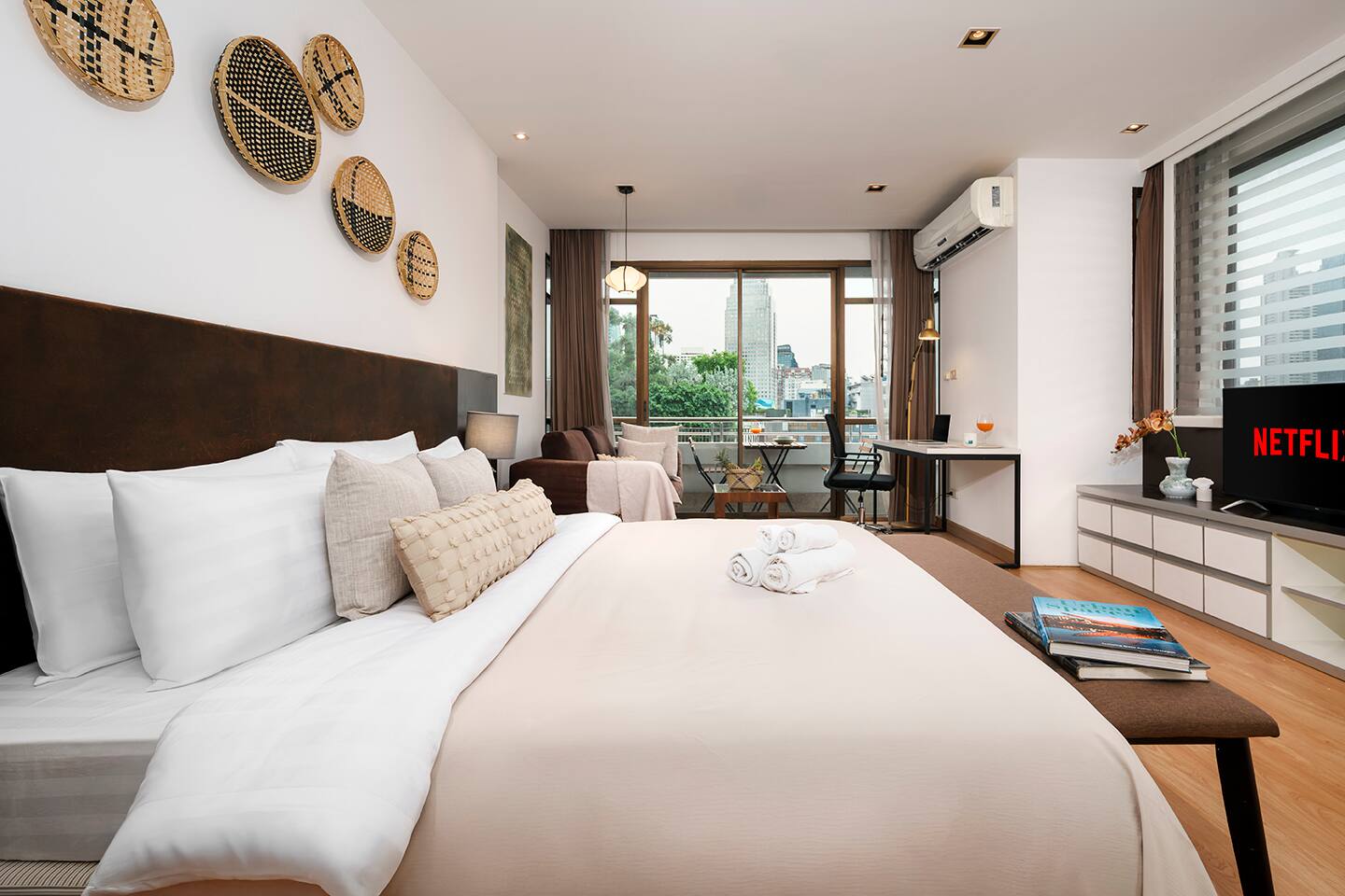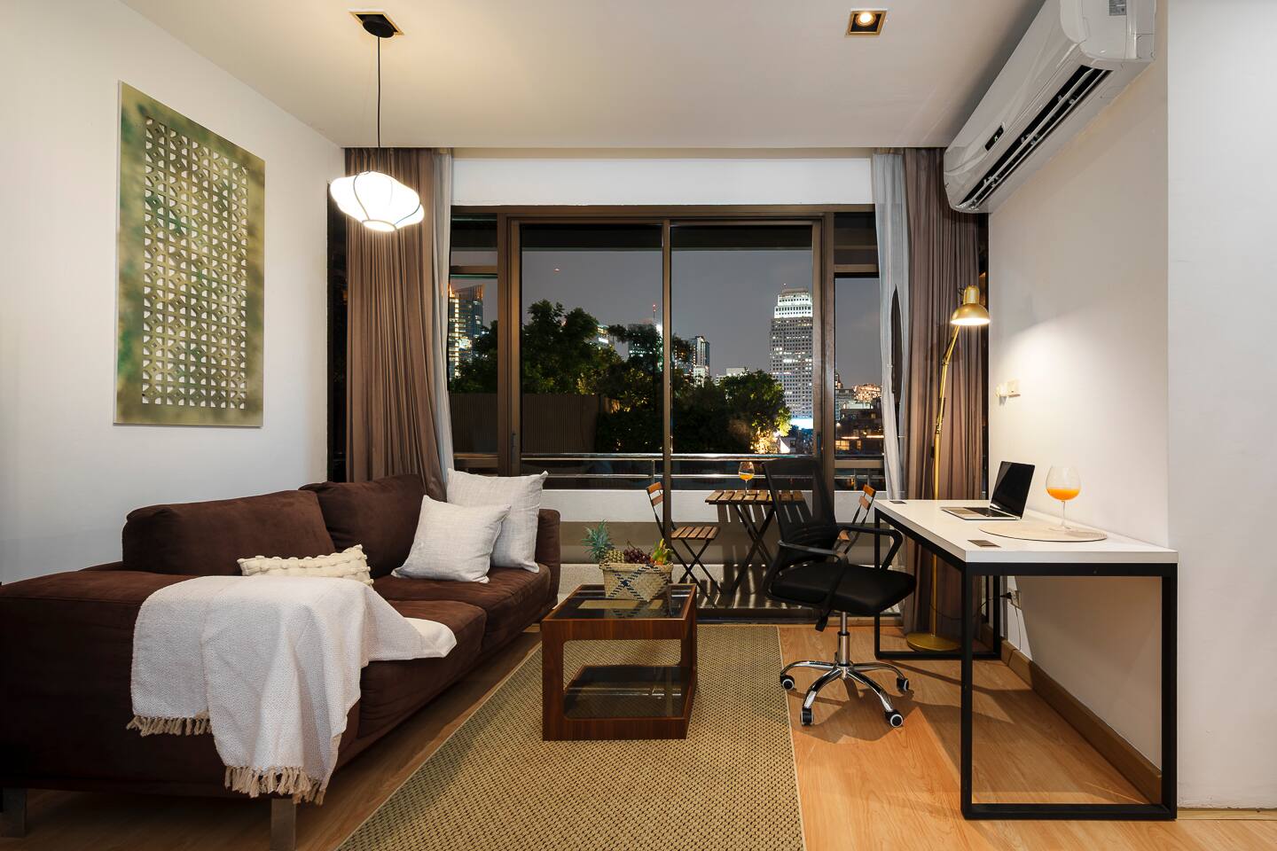 ★ PROPERTY HIGHLIGHTS ★ 54 sqm, tranquil 1‑bedroom near BTS Nana & Benjakitti Park, perfect for couples or remote workers. Tucked off the main street for quiet, but just minutes to 7‑Eleven, Terminal 21, and vibrant nightlife. ★ LIVING ROOM & WORKSPACE ★ City and park view balcony Cozy seating & smart TV with Netflix Dedicated workspace with comfortable chair and high-speed Wi‑Fi ★ BEDROOM ★ King-size bed with pillow variety (high & low) Large wardrobe, full‑length blackout curtains, and ambient dimmable lighting Full-length mirror, hair dryer, iron & ironing board provided ★ KITCHEN & LAUNDRY ★ Fully equipped kitchen: electric stove, coffee filter, basic condiments (oil, salt, sauces) Washer + essentials for laundry and longer stays Coffee & tea station—enjoy a morning brew on the balcony ★ BATHROOM ★ Bathtub + modern shower with strong pressure Complimentary toiletries and towels ★ AMENITIES & BUILDING PERKS ★ Pool & gym access Free parking + shuttle to BTS Nana (pending availability) Quiet building with residential feel. ★ NEARBY ★ 7‑Eleven, cafes & restaurants: 2 min walk Benjakitti Park & skybridge to Lumpini: 5 min walk BTS Nana - 5min or 2 min shuttle Terminal 21 Mall / MRT Asoke: 10 min walk Nightlife on Soi 11: 7 min stroll