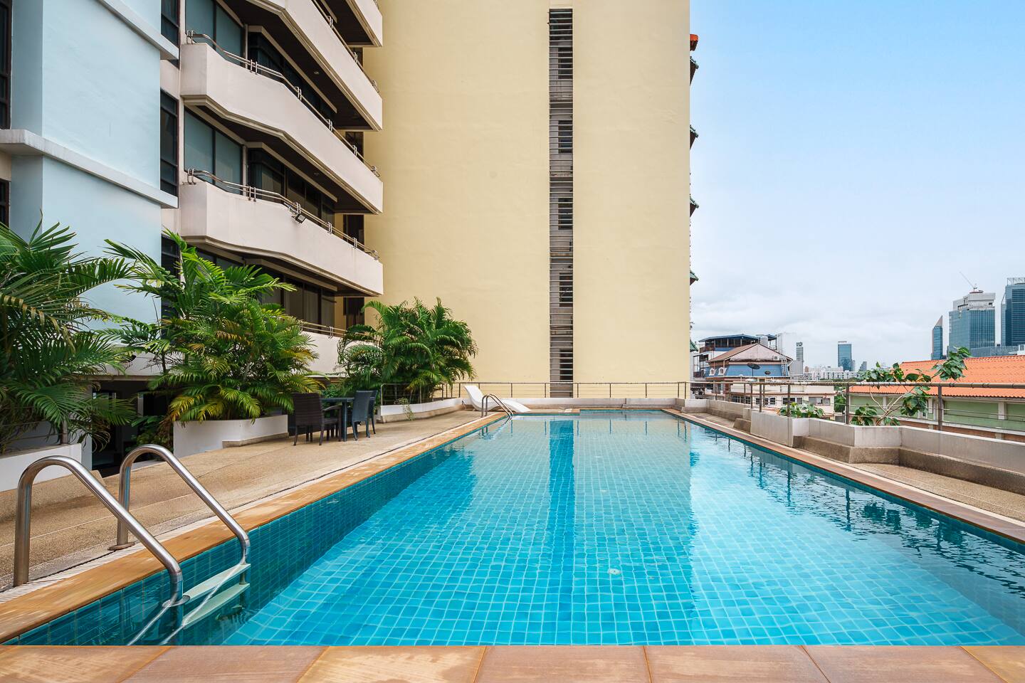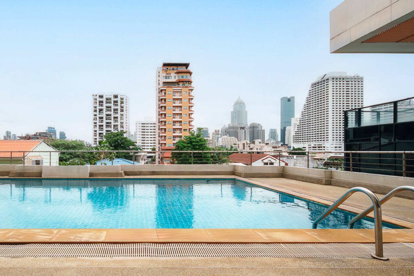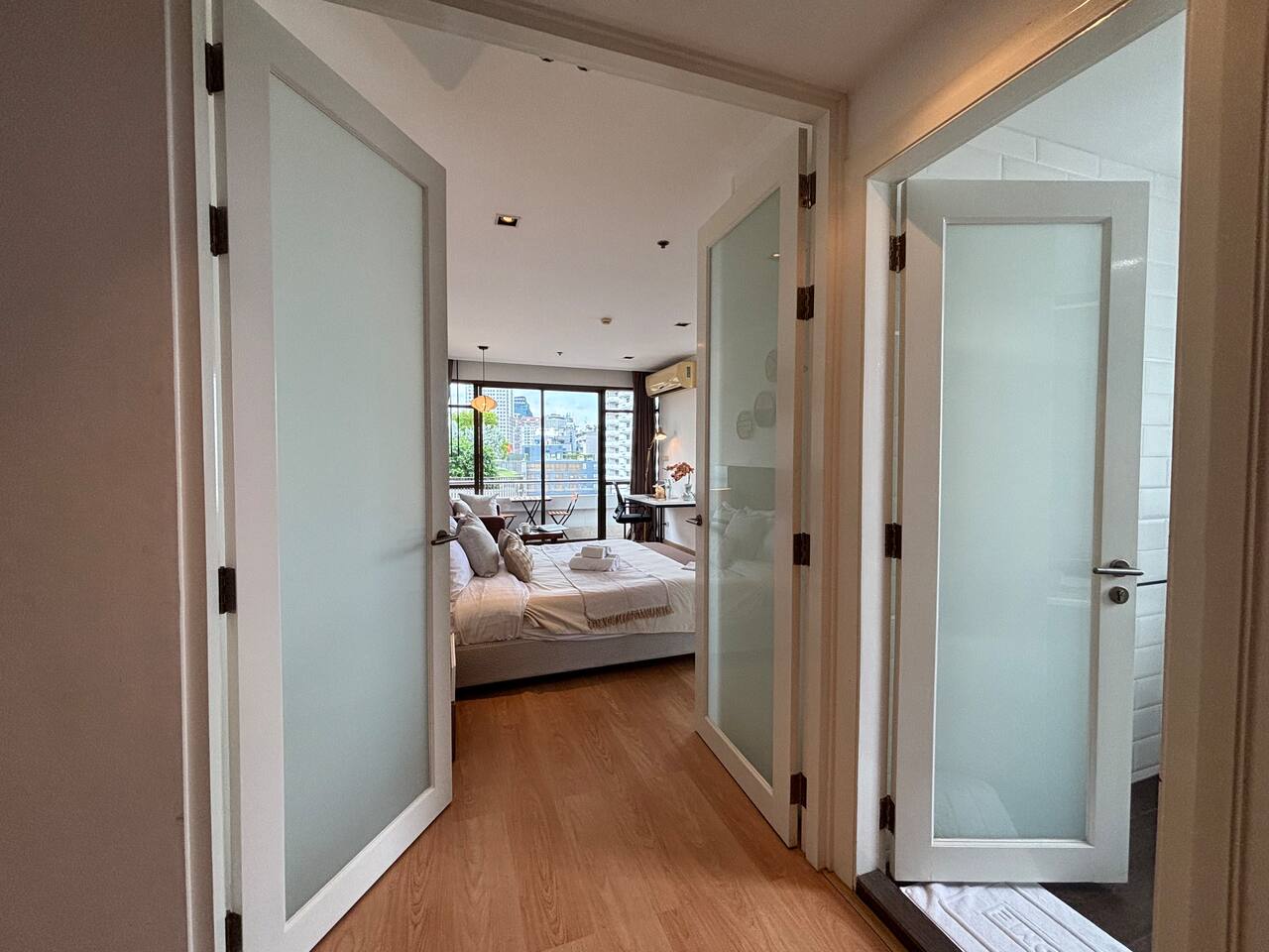 Guests have full access to the apartment, including the balcony, kitchen, and in-unit washer. You’ll also enjoy access to the building’s shared pool, gym, sauna, subject to availability per building management. Free parking is available on-site, and a shuttle service to BTS Nana is offered. Please note: this is a residential building, not a hotel—quiet hours and building rules apply.