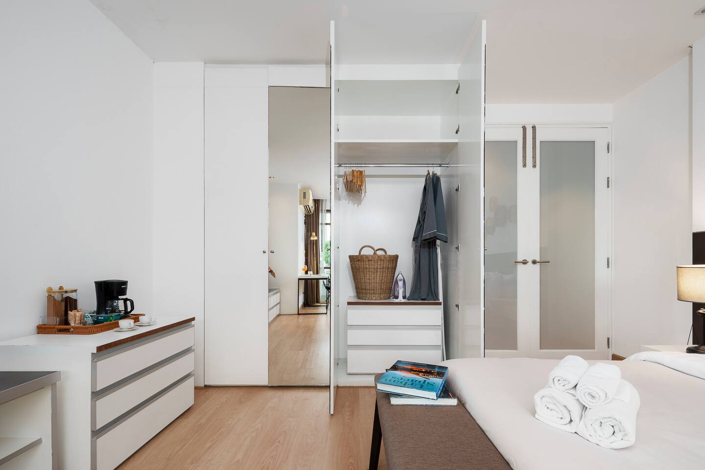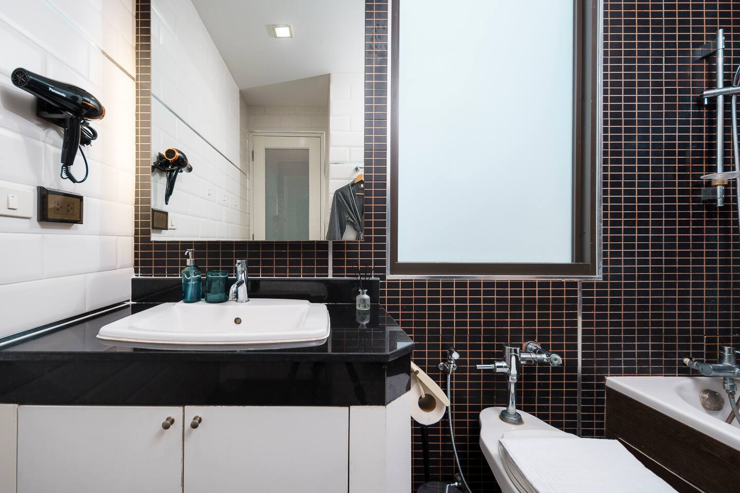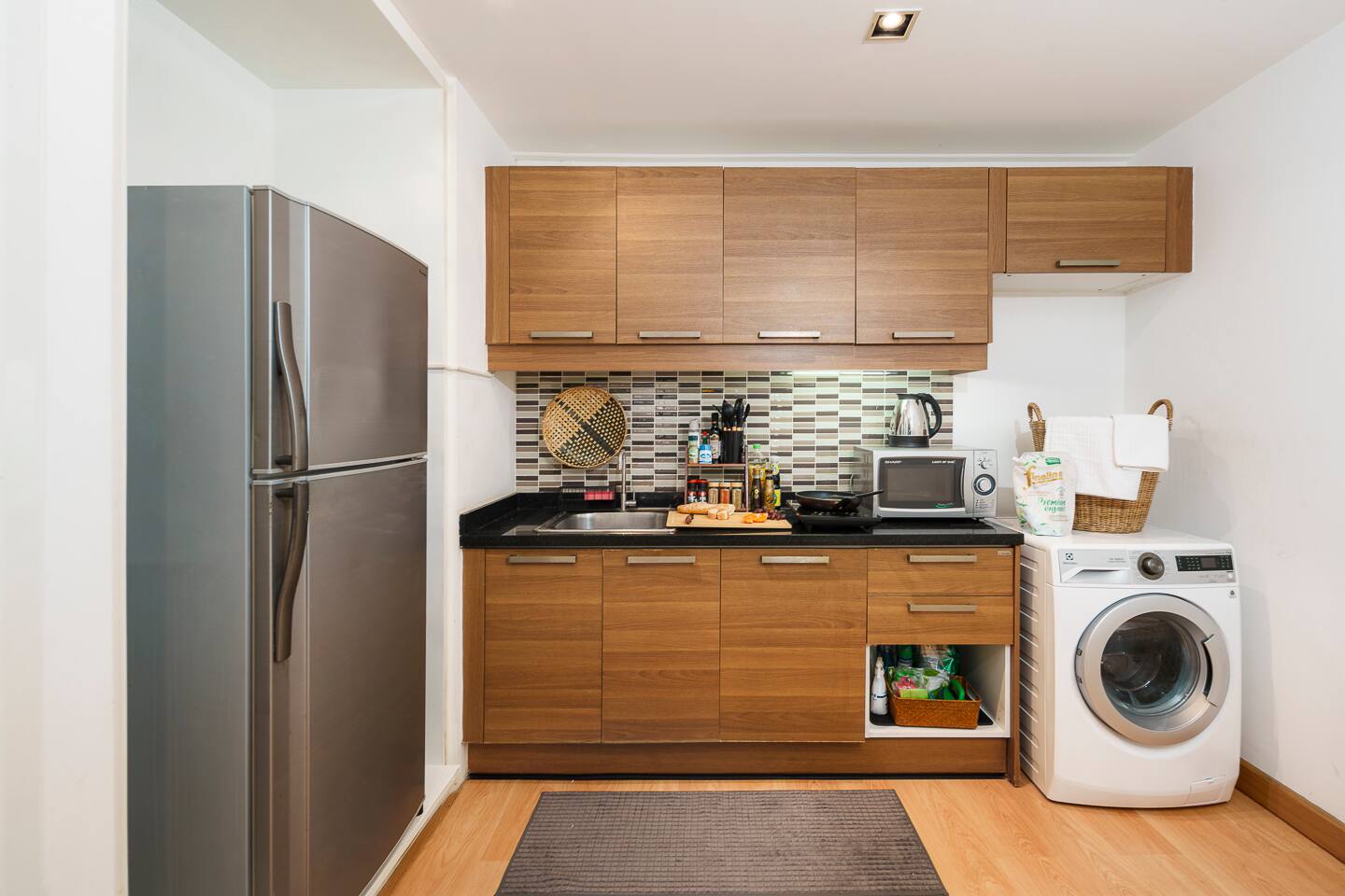 Guests have full access to the apartment, including the balcony, kitchen, and in-unit washer. You’ll also enjoy access to the building’s shared pool, gym, sauna, subject to availability per building management. Free parking is available on-site, and a shuttle service to BTS Nana is offered. Please note: this is a residential building, not a hotel—quiet hours and building rules apply.