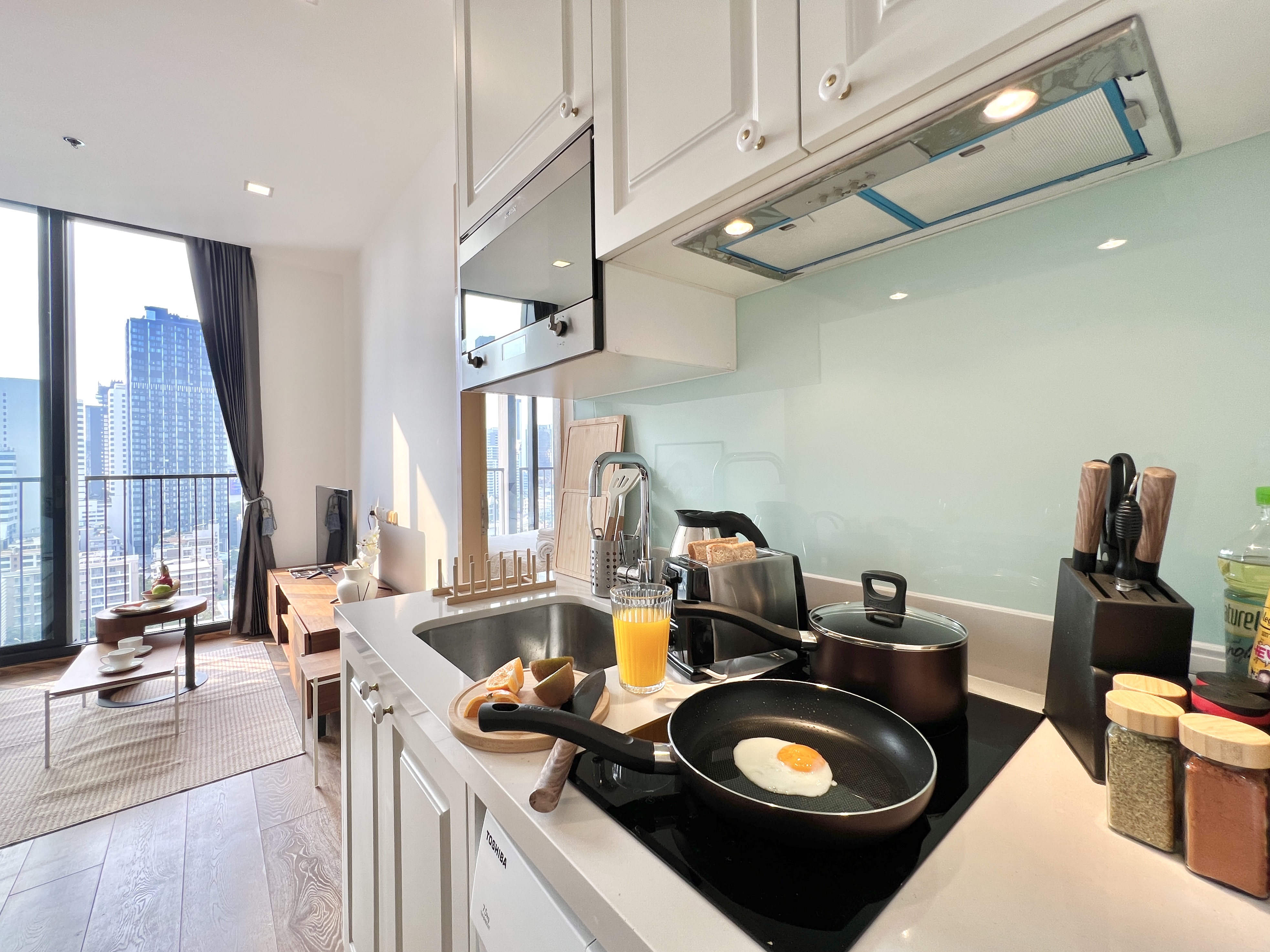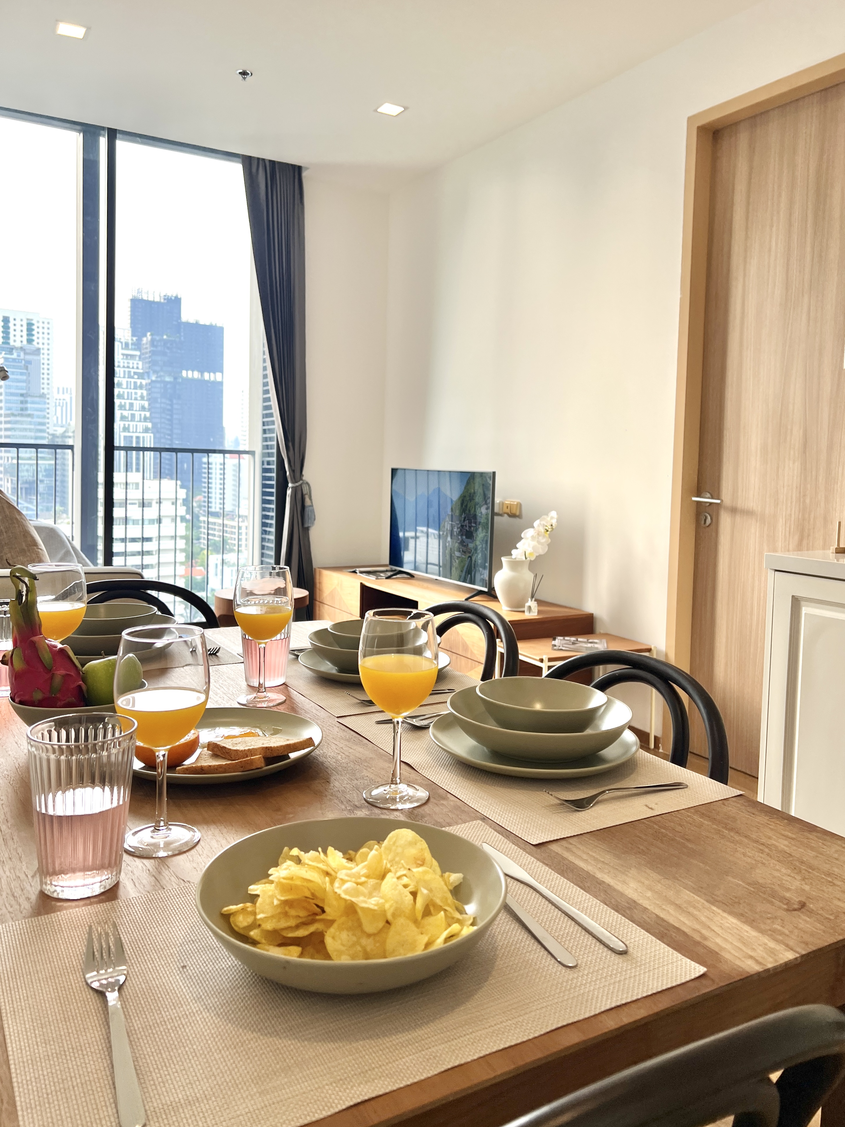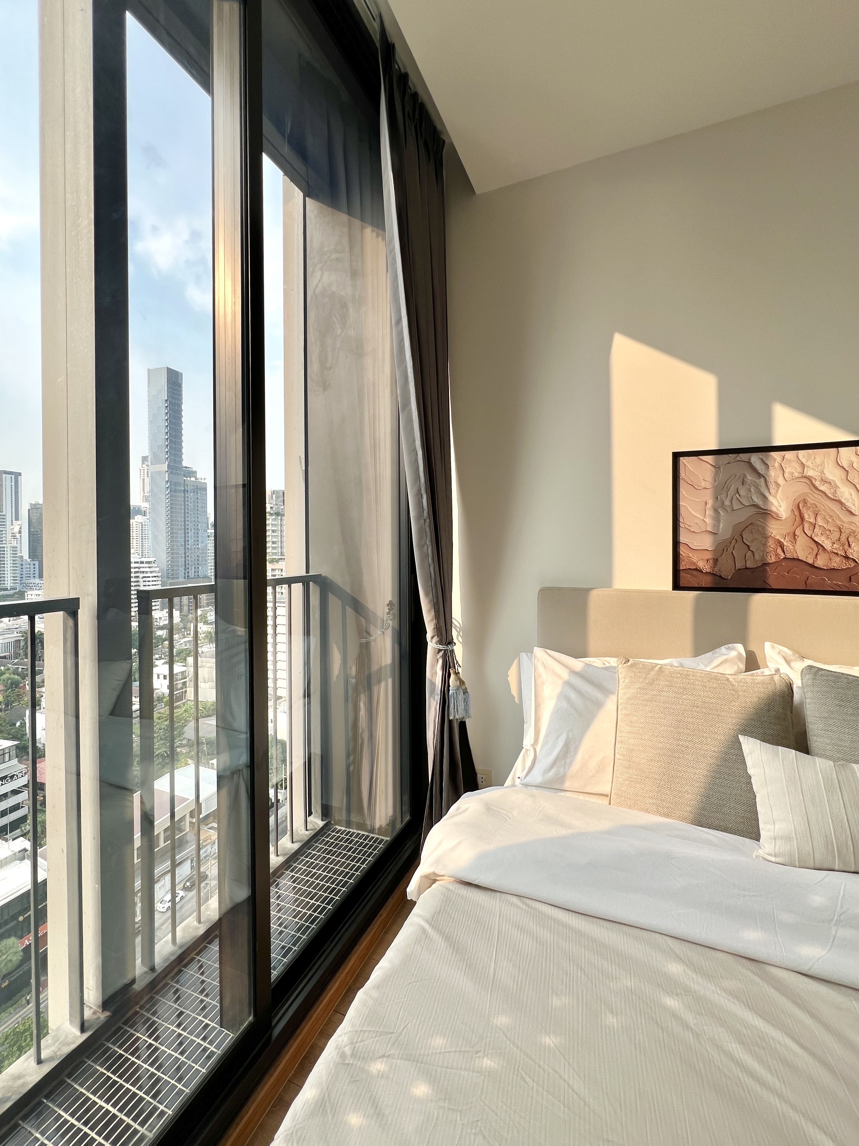 This Fully-equipped modern apartment with stunning views, unbeatable access to top-tier malls, IG-worthy spots and Leafy Benjasiri Park offers a perfect blend of comfort and convenience, ideal for families, larger groups and people who like space! β PROPERTY HIGHLIGHTS β β’ Amazing Sky Infinity Edge Pool & Gym on higher floors β’ 2 private balconies with city views β’ Steam rooms, Semi-outdoor lounge, Green garden space, and a reflective lobby β’ Surrounding by Local street food/CafΓ© πPrime Location Located on Soi Sukhumvit 33, walk from home to BTS Phrom Phong, EmQuartier, and Benjasiri Park. Good food and cafe everywhere . Perfect for your Long stays or Working from home. β LIVING SPACEβ Living room with private balcony access, dining table, and smart TV with plenty of space to relax, work, or entertain, distinct from the bedroom. You'll feel right at home. β Workspace + Working chair β Spacious Living space to entertain and unwind β Large balcony connected - ideal for morning coffee or evening drinks. β Smart TV with Netflix and Super Fast WiFi β Proper Dining seating - ideal to catch up and entertain. β BEDROOM RETREAT: QUEEN COMFORT β Unwind in a spacious bedroom, Blackout curtains with a comfortable that offers the perfect blend of comfort, functionality, and all the essentials for a restful stay. Along with β Spacious 2 Wardrobes for easy unpacking β Individually controlled Air-con in both bedrooms and Living room β Quiet and private perfect for light sleepers β Extra pillows and linens provided upon request β Ideal setup for couples and friends β Drying rack for laundry, including an iron, ironing board. β SPACIOUS & EQUIPPED KITCHEN β Prepare your favorite meals in a fully equipped kitchen with everything you need : Cook like Local β Coffee corner β Electric stove β Full set of cookware and utensils β Basic cooking supplies provided β In-unit Washing Machine β Built in microwave β Full-sized refrigerator β BATHROOM + TUB: Your Private Oasis β Private ensuite bathrooms + BathTub : Clean, stylish, and thoughtfully equipped β Bathtub available for spa-like experience β Clear separate toilet area with a modern bidet spray β Fresh towels and essential toiletries provided (shampoo, conditioner , body wash, hand soap) β Hair dryer, mirror, and good lighting for getting ready β CLOSE BYβ π½οΈ Food & Drinks: Indulge in a culinary adventure with top-rated Japanese restaurants, international cuisines, and trendy cafes just steps away. Donki Mall offers premium groceries and unique Japanese products. ποΈ Shopping: The M-District (EmSphere, EmQuartier, Emporium) is a short BTS ride away, offering luxury shopping, gourmet groceries, rooftop bars, and a jazz lounge. ποΈββοΈ Fitness & Activities: Stay active with CrossFit, Muay Thai, Pilates, and yoga studios nearby, or unwind at local spas and wellness centers. For something unique, challenge yourself at Stone Goat Climbing HallβThonglorβs premier indoor climbing gym, perfect for both beginners and experienced climbers. π Local Gems: Discover hidden gems like The Commons Thonglor, an upscale food hub with global cuisine and a wide wine selection, popular among creatives and trendsetters. β BEST AREA IN THE CITY: For you to enjoyβ PhromPhongi is known for their vibrant nightlife, creative restaurants, and boutique bars. Experience the youthful energy and unique charm of this dynamic area, walk there and spend time with friends rather than a taxi jam! Book your stay today and discover why PhromPhong is Bangkok's favorite neighborhood for locals and travelers alike! (Ask about our other listings in the building see below)