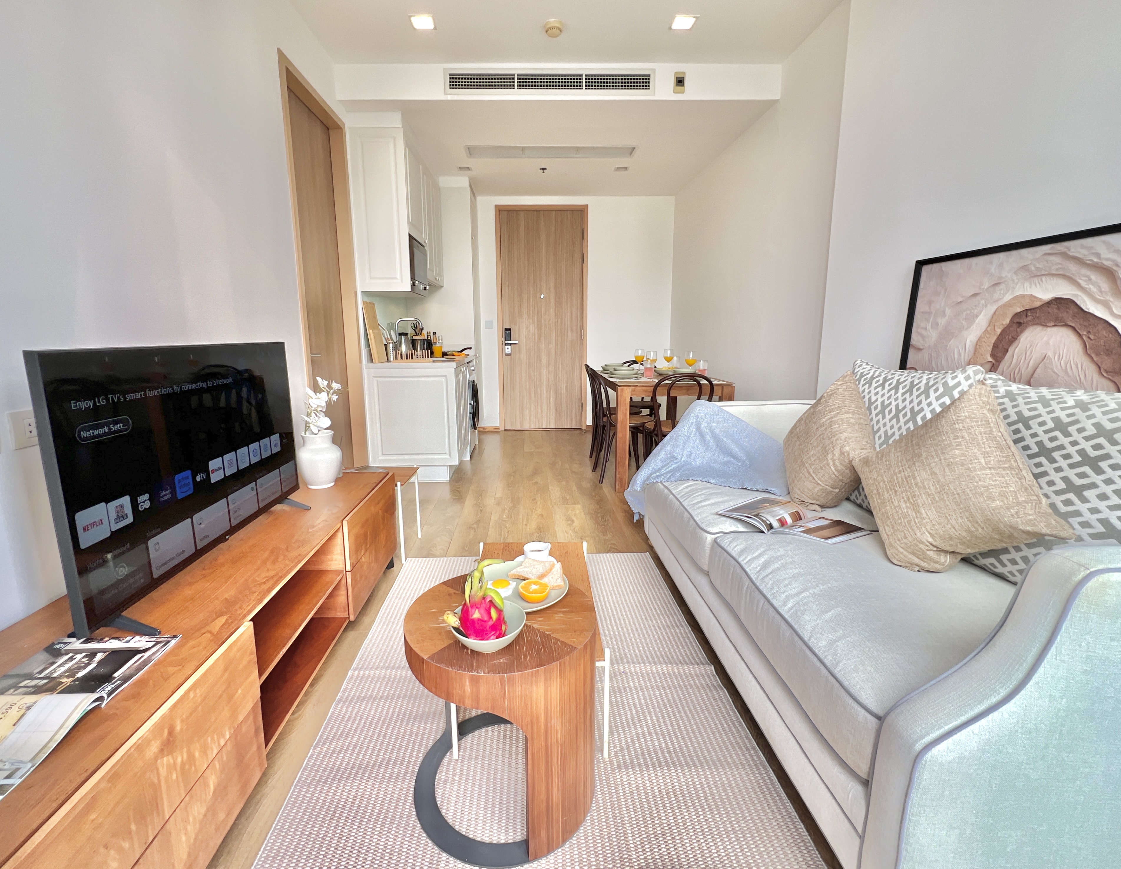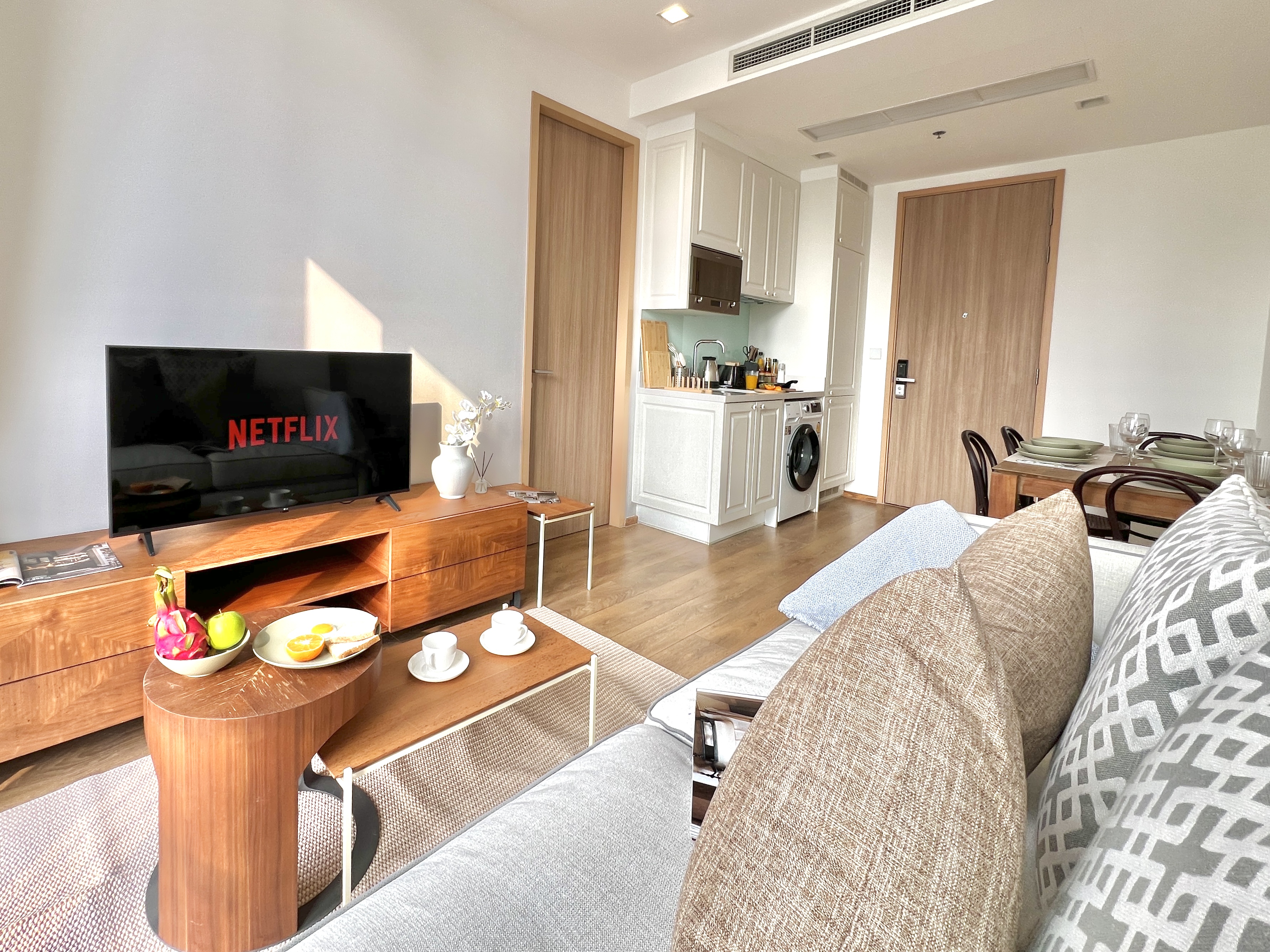 As our valued guest, your comfort and satisfaction are our top priorities. We kindly request your cooperation in observing the following guidelines to ensure a pleasant stay for all: - Pets are not allowed in the apartment. - Smoking and vaping are strictly prohibited inside the property. - Events and parties are not allowed at any time. - Infants (under 2 years old) are not permitted. Children are welcome. - Please observe quiet hours from 23:00 to 06:00 to respect our neighbors and maintain a peaceful environment. - We encourage guests to maintain the cleanliness of the apartment throughout their stay. Cleaning supplies are provided for your convenience. - Prior to departure, please dispose of all waste in the designated garbage areas. - Kindly do not rearrange the furniture, as it is placed for your safety and comfort. - Before checking out, ensure that all personal belongings and items provided remain in the apartment. - In cases of excessive cleaning needs, damages, or lost items, additional charges may apply: β’ Excessive cleaning: THB 500 - 1,000 β’ Lost items: Replacement cost plus a 15% handling fee β’ Damages: Full cost of repair or replacement plus a 15% handling fee β’ Left items can be returned for the price of postage plus a 15% handling fee - We ask guests to treat the apartment with respect and consideration, as you would your own home. - Departure instructions and a checklist will be provided to help ensure the apartment is left in a tidy condition. Your cooperation with these guidelines is greatly appreciated and contributes to a delightful experience for all our guests. We wish you a wonderful and memorable stay.